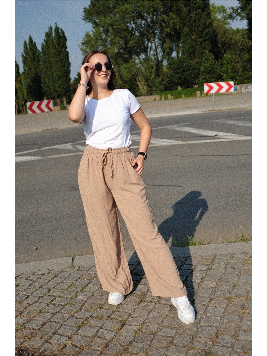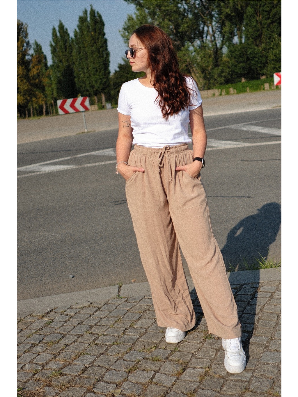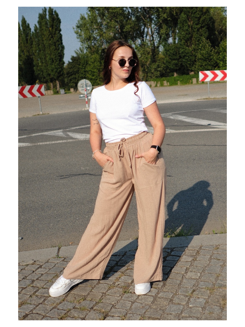 Tyto lehoučké kalhoty si vás získaly. Ušili jsme je totiž ze skvělého materiálu, 80% viskózy a 20% lnu. Mají příjemně volný střih, prostě úžasně pohodlné kalhoty do každé situace. V pase mají gumu, ale navíc jsme přidali také šňůrky, díky kterým si kalhoty můžete stáhnout dle potřeby. Navíc skvěle podtrhnou celkový vzhled kalhot.
