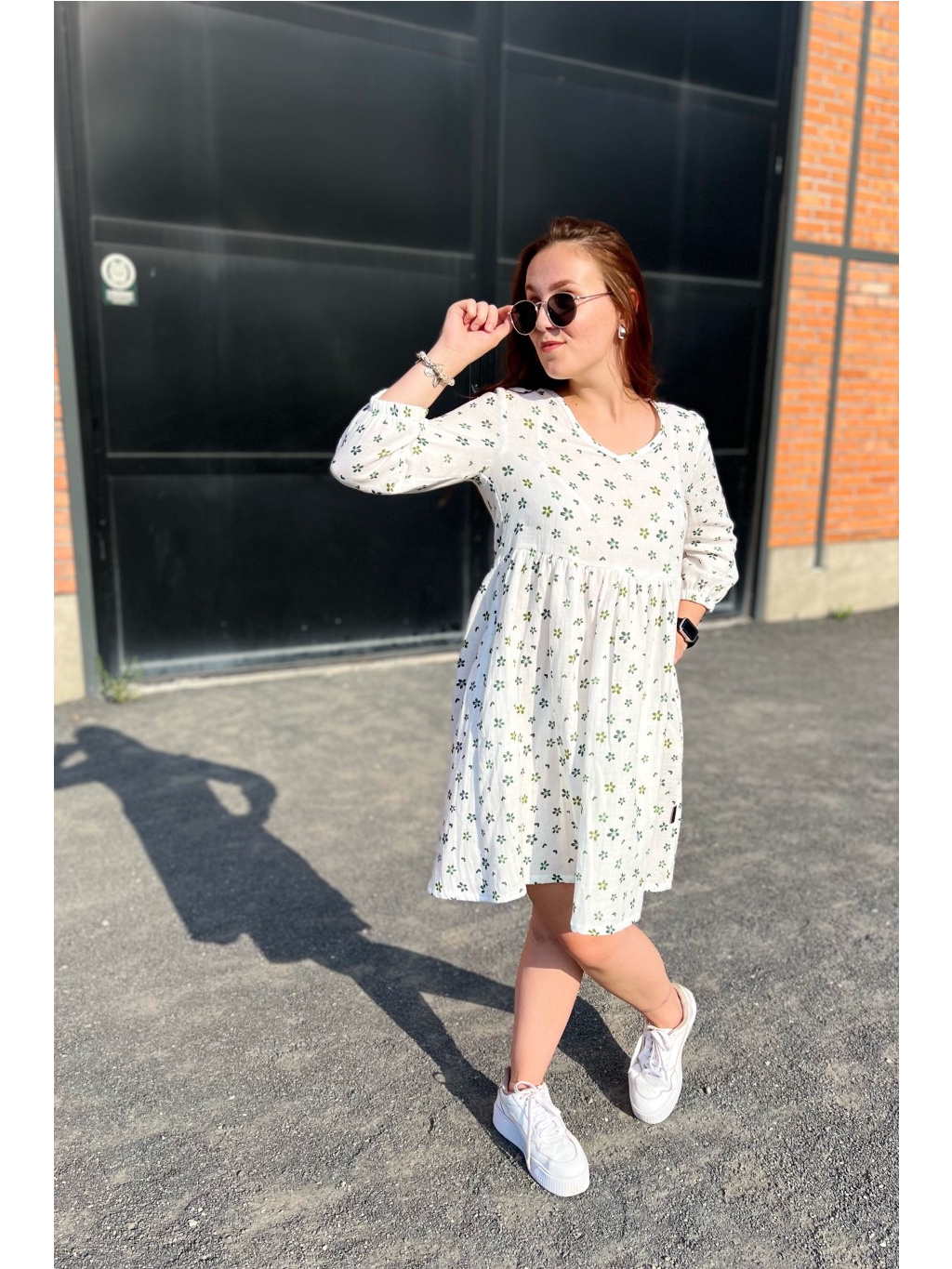 Při výběru velikosti dbejte na to, že šaty Vám musí být dostatečně volné. Díky volnému způsobu tkaní, je mušelín skvěle prodyšný, nesmí Vám ale pnout. Rovněž počítejte se srážlivostí okolo 5%.