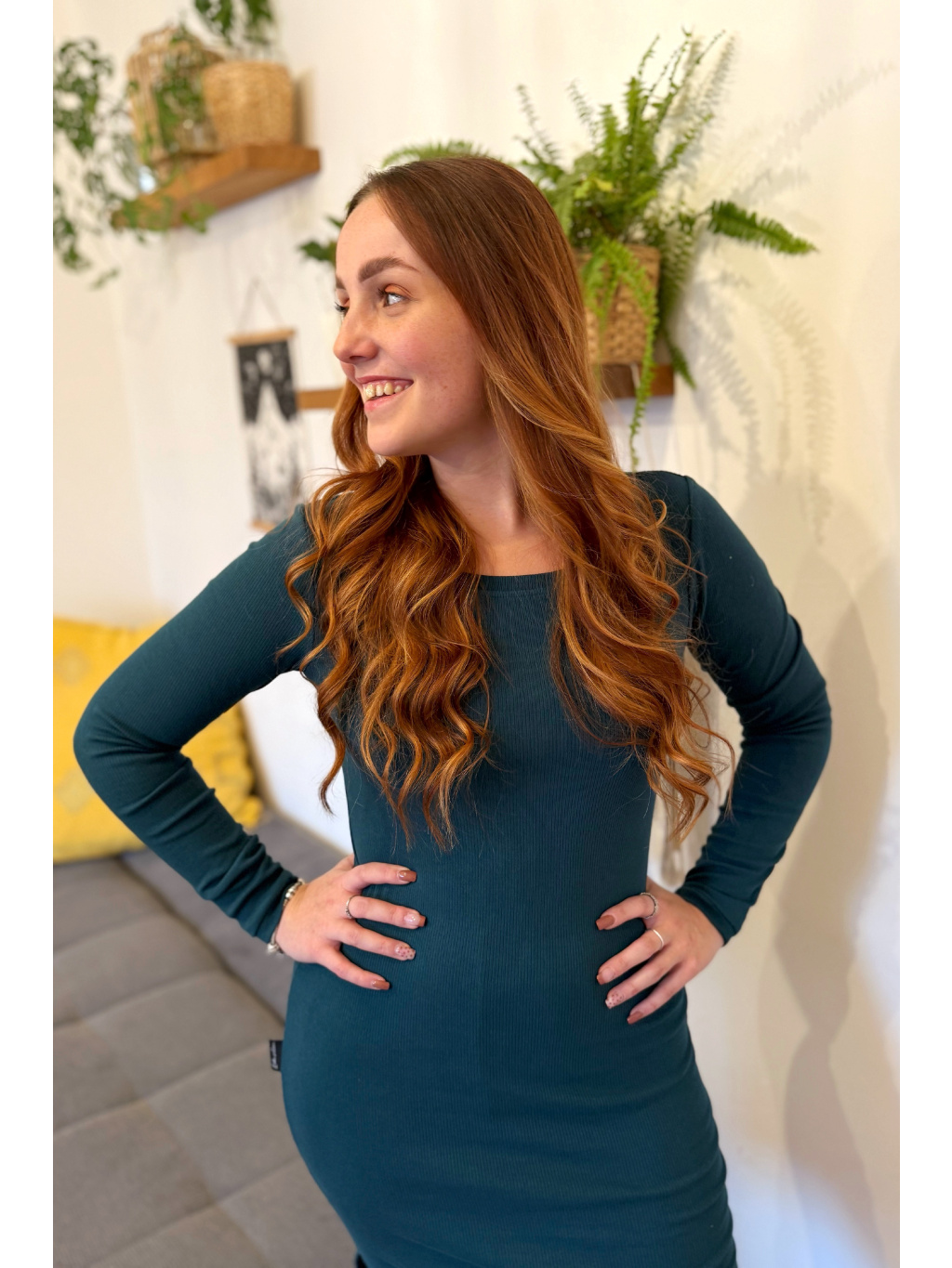 Šaty Laura jsou důkazem, že v jednoduchosti je krása. Přiléhavý střih z příjemného žebrovaného úpletu krásně kopíruje postavu, ale zároveň zůstává pohodlný i na celodenní nošení. Boční rozparky dodávají šatům lehkost, volnost pohybu a jemně ženský detail.