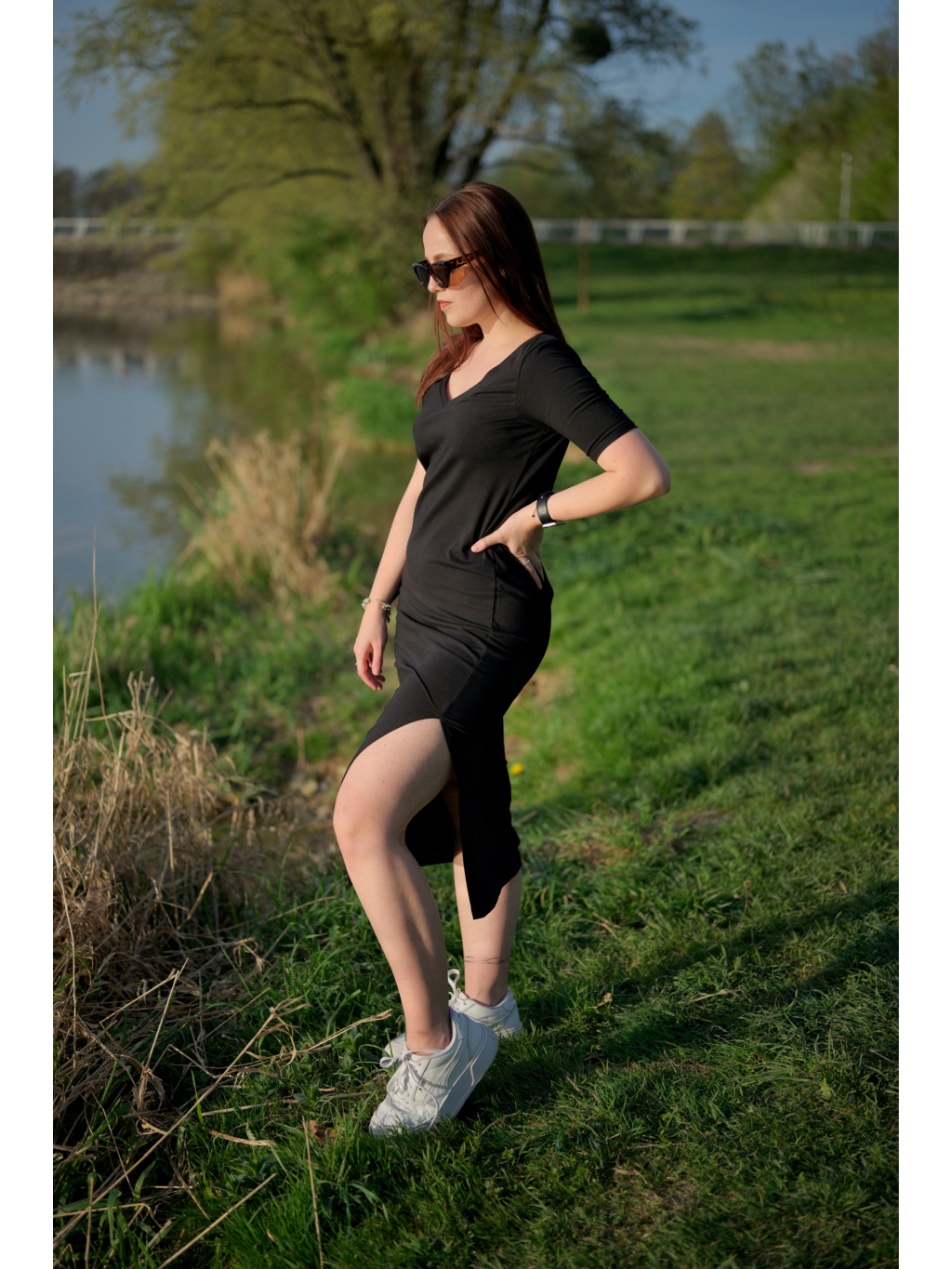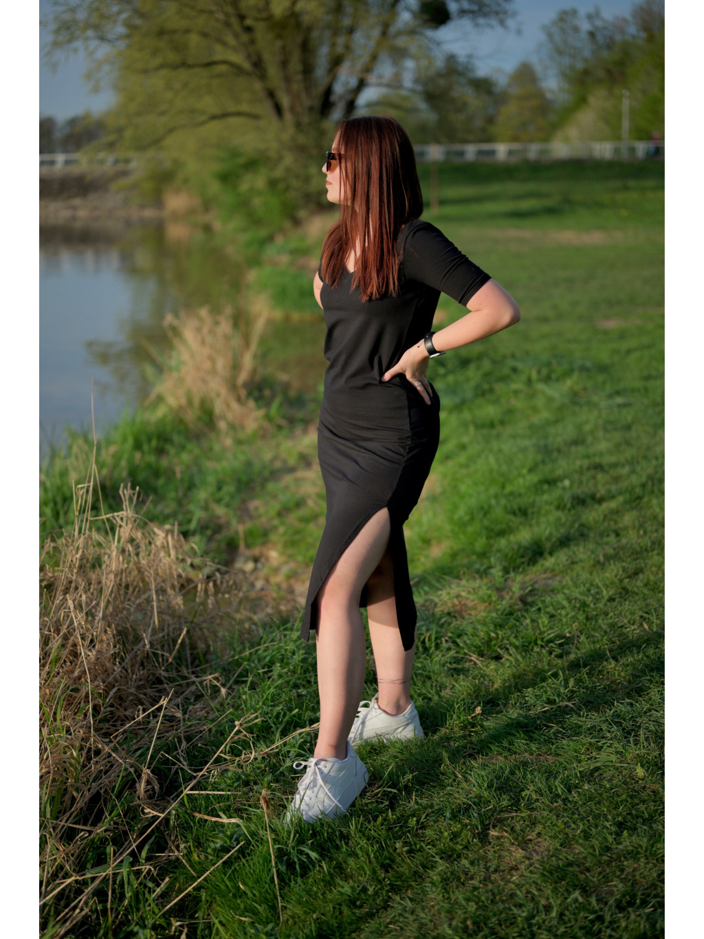 Složení materiálu: BIO bavlna 95%, Elastan 5% šaty s rozparkem