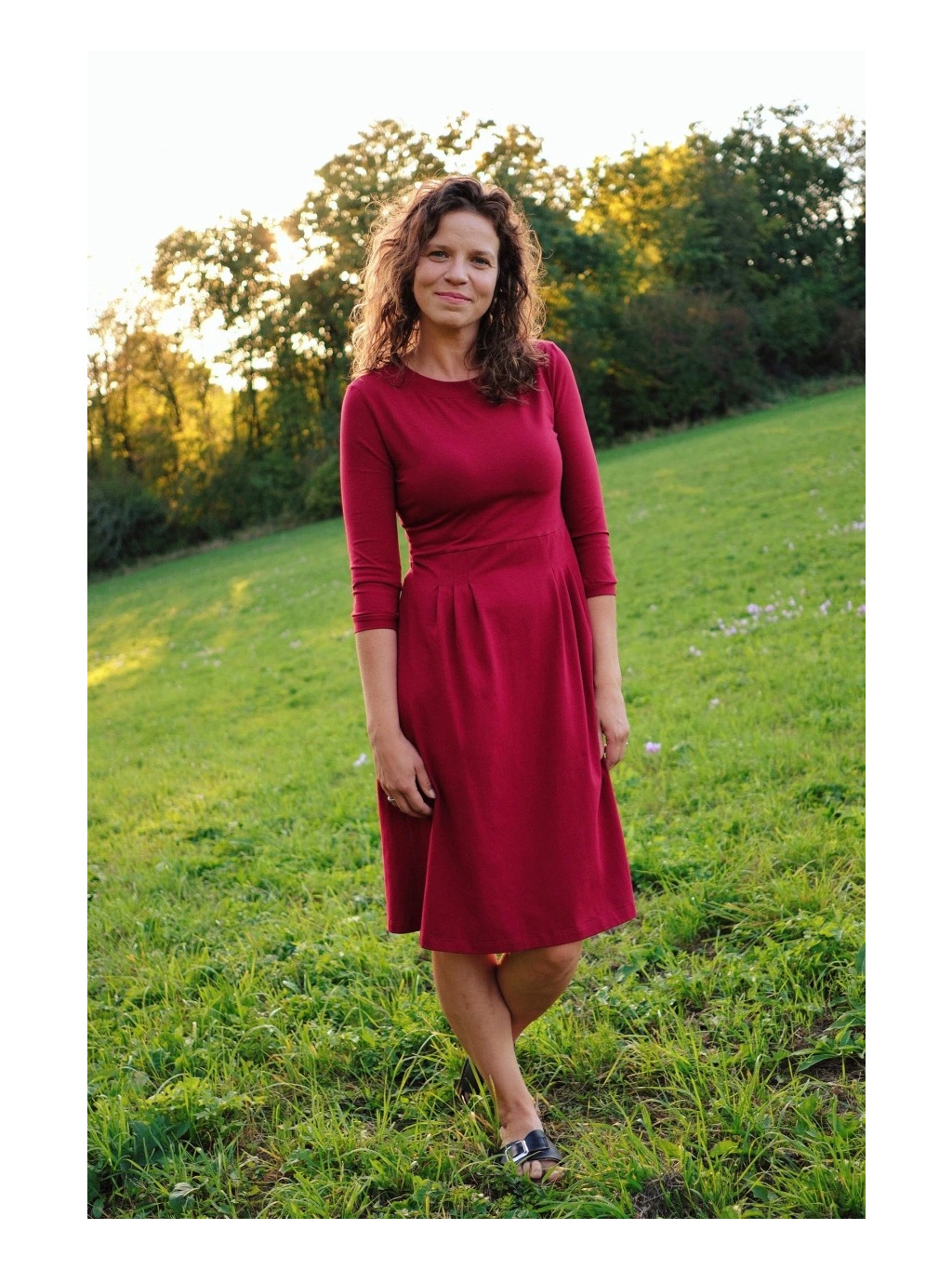Další z našich NOVINEK jsou šaty Natali s 3/4 rukávem.Ušity jsou z příjemné GOTS certifikované biobavlny s příměsí elastanu. Tento materiál je nejen příjemný, ale také je celý proces jeho výroby šetrný k životnímu prostředí. Střih šatů je lichotivý, skryje i nějaké ty dokonalé - nedokonalosti.
