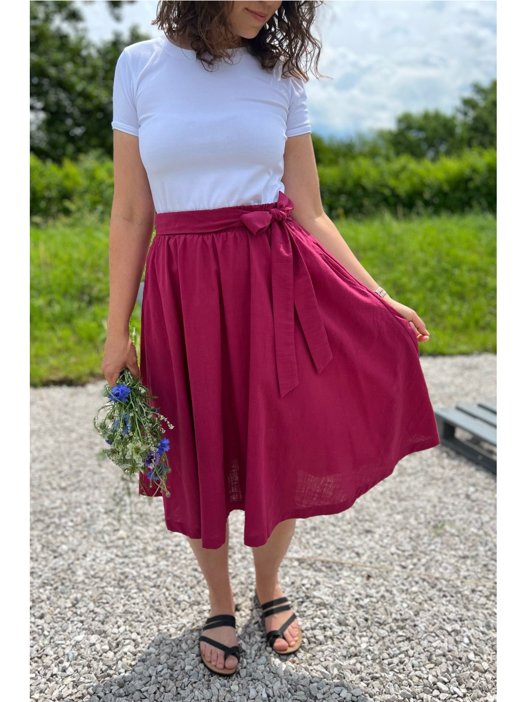 Naše nové sukně  Athena jsou stvořeny pro léto! Ušili jsme je z lehoučkého a prodyšného materiálu – 80 % bavlna a 20 % len – který vás zahalí do pohodlí a zároveň nechá pokožku dýchat.