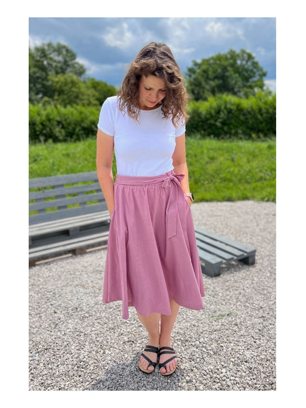 Naše nové sukně Athena jsou stvořeny pro léto! Ušili jsme je z lehoučkého a prodyšného materiálu – 80 % bavlna a 20 % len – který vás zahalí do pohodlí a zároveň nechá pokožku dýchat.