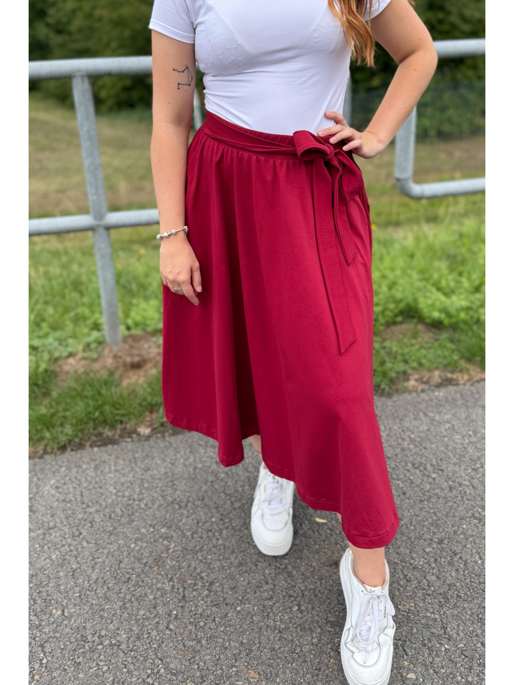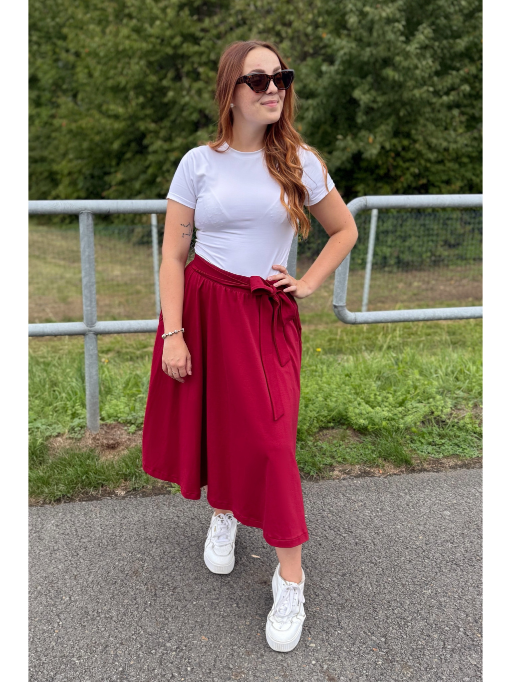 Elegantní, a přitom maximálně pohodlná – to je naše sukně Aurora. Skvěle ji sladíte jak s teniskami, tak s podpatky, a díky její univerzálnosti si ji rychle zamilujete. V pase má pružnou gumu a elegantní vázačku. A pokud si potrpíte na pohodlí, stejně jako já, určitě oceníte praktické kapsy po stranách.