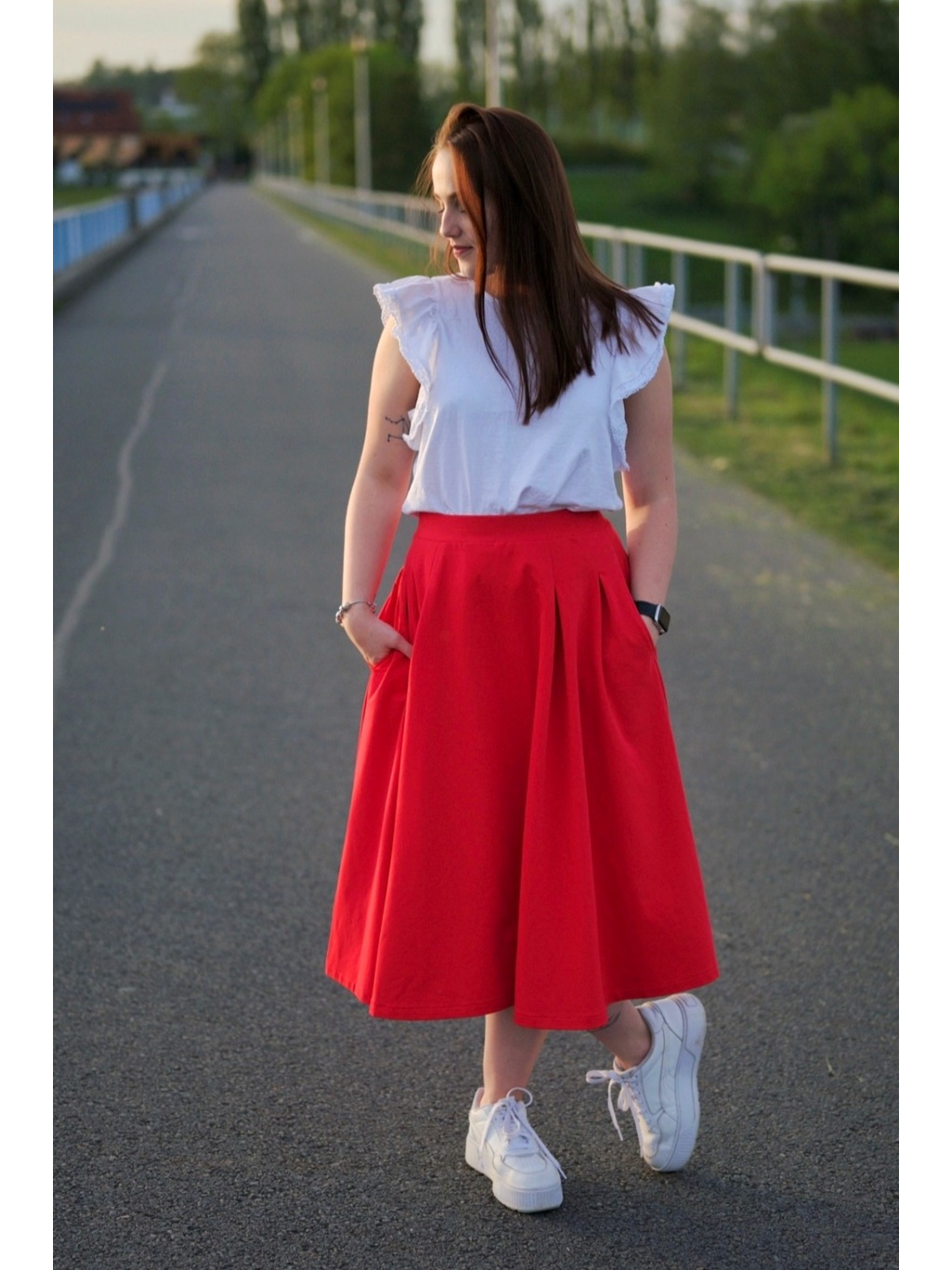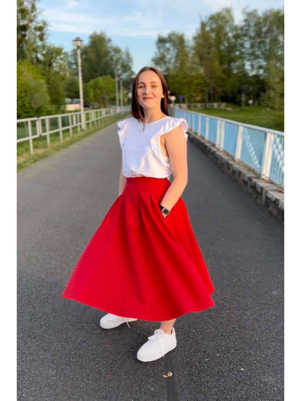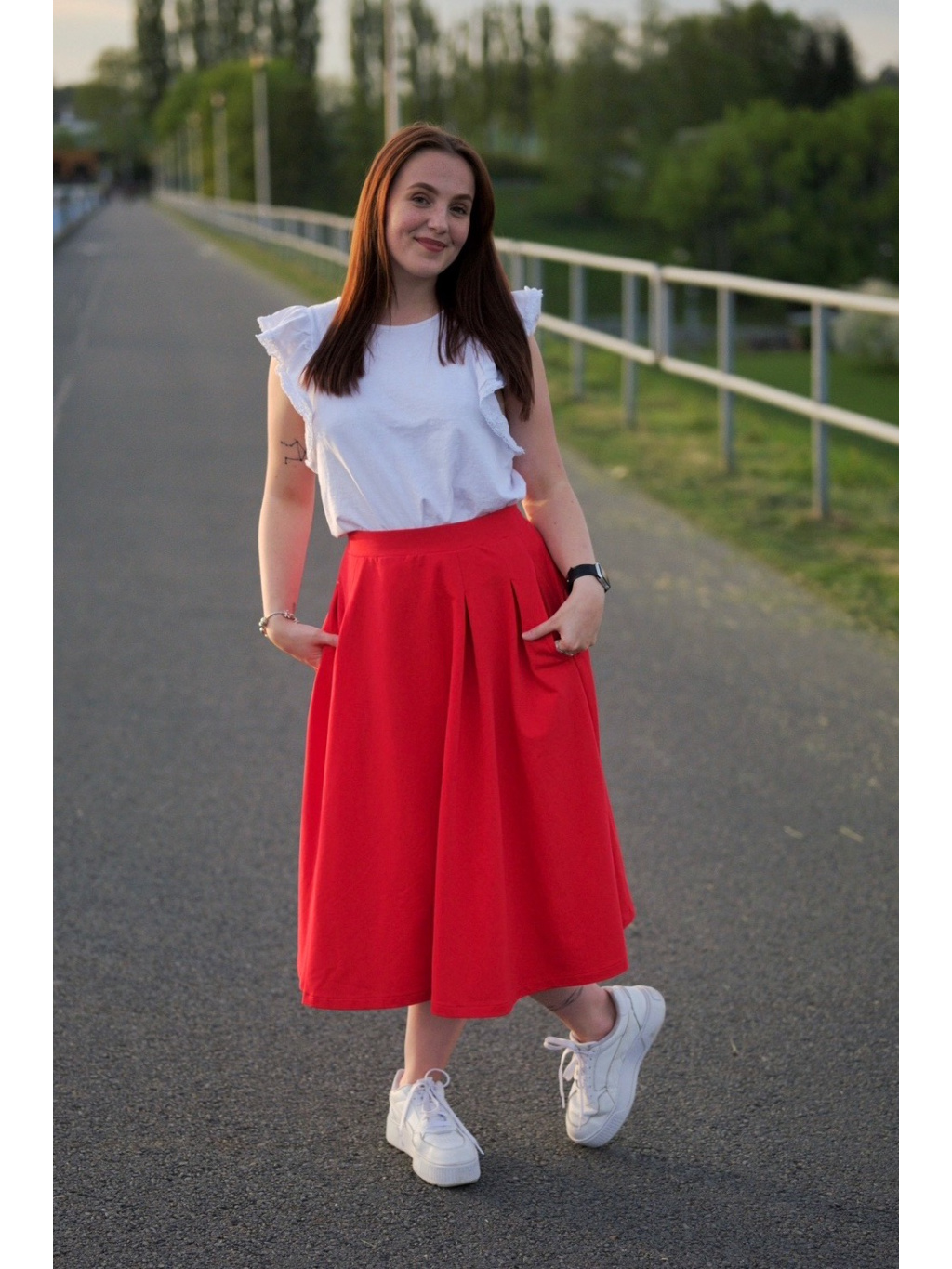 Sukně šijeme prioritně na objednávku – zodpovědně, bez zbytečných zásob a plýtvání materiálem. Věříme v pomalou módu, která má smysl.
