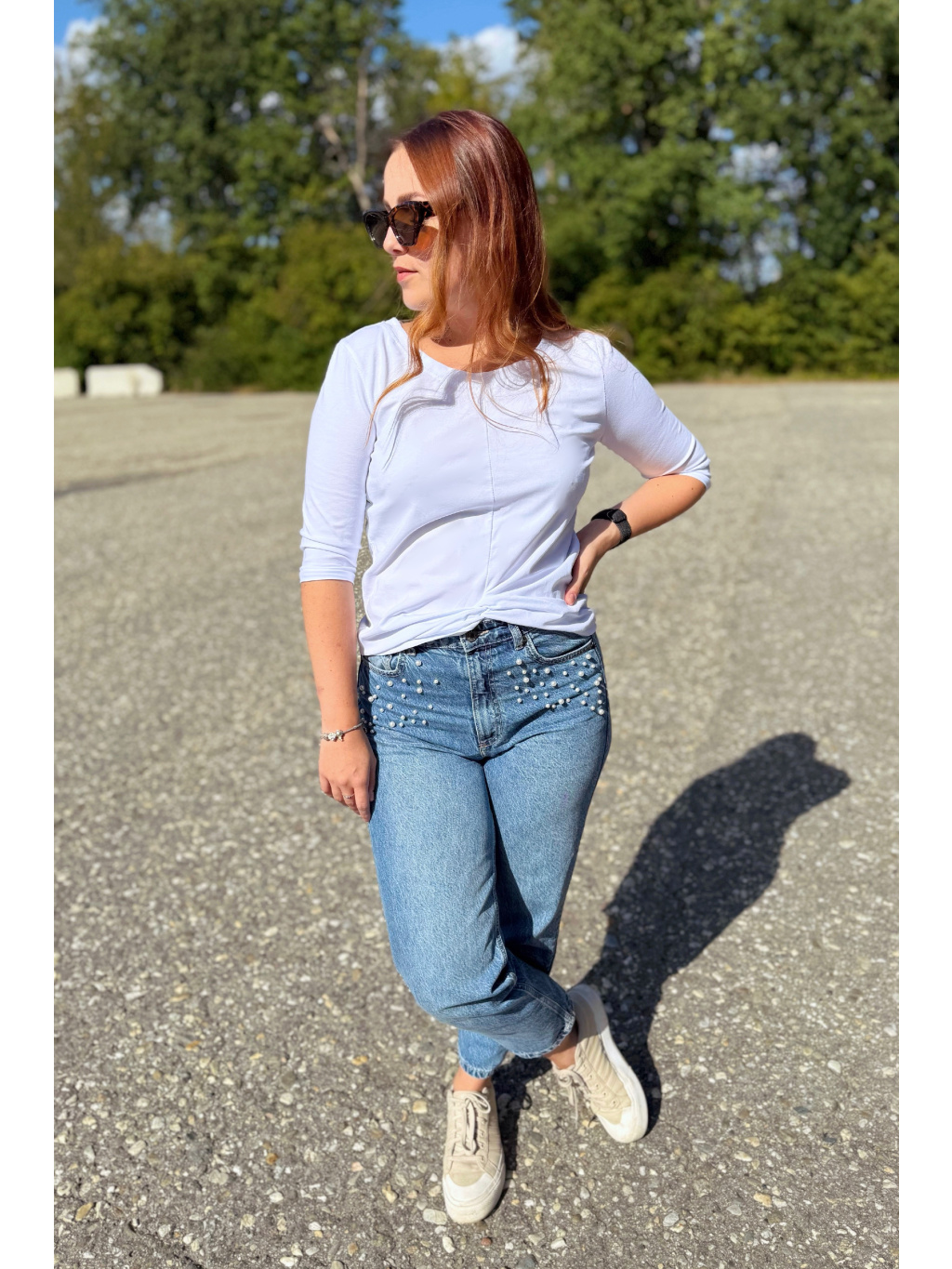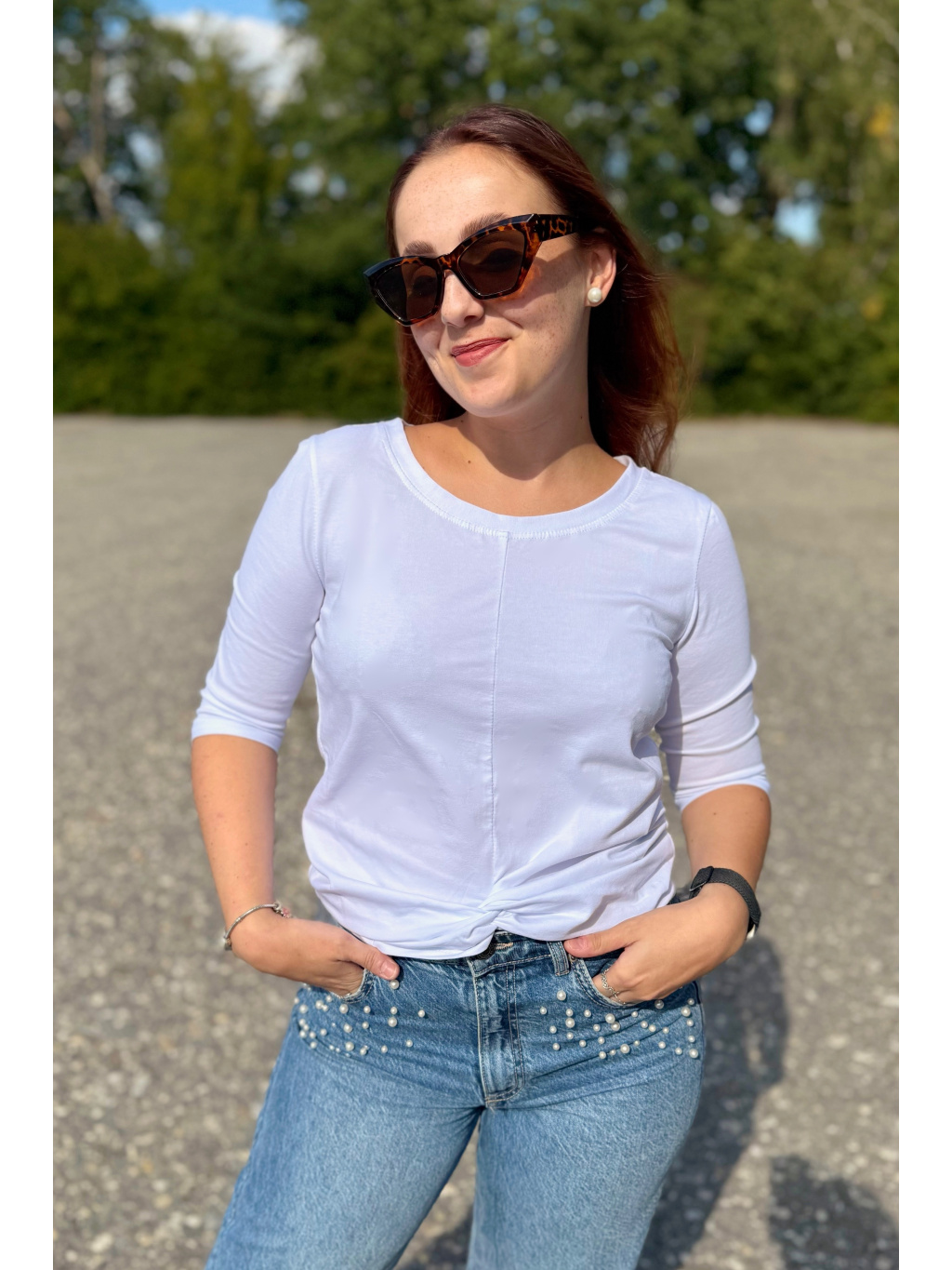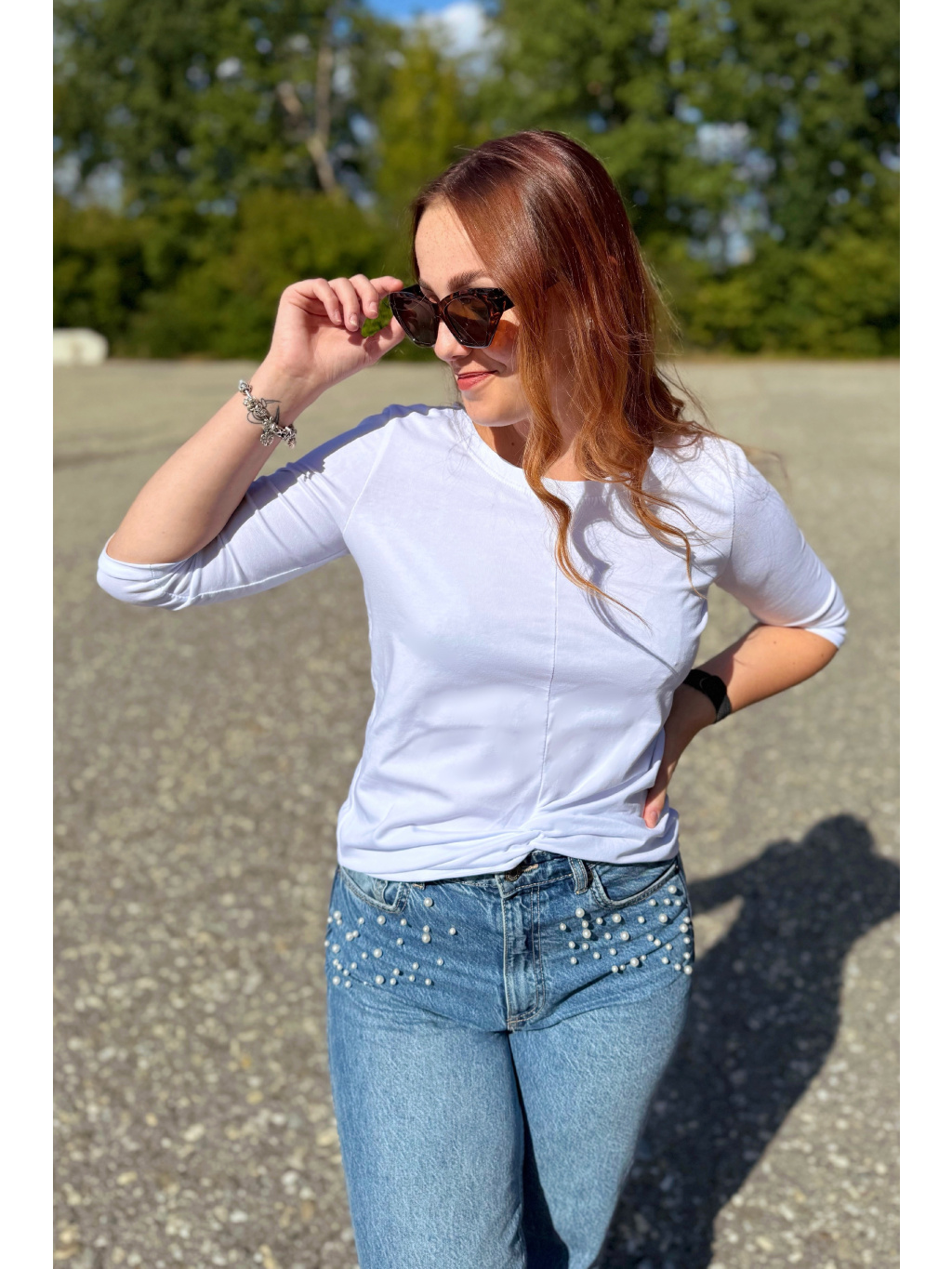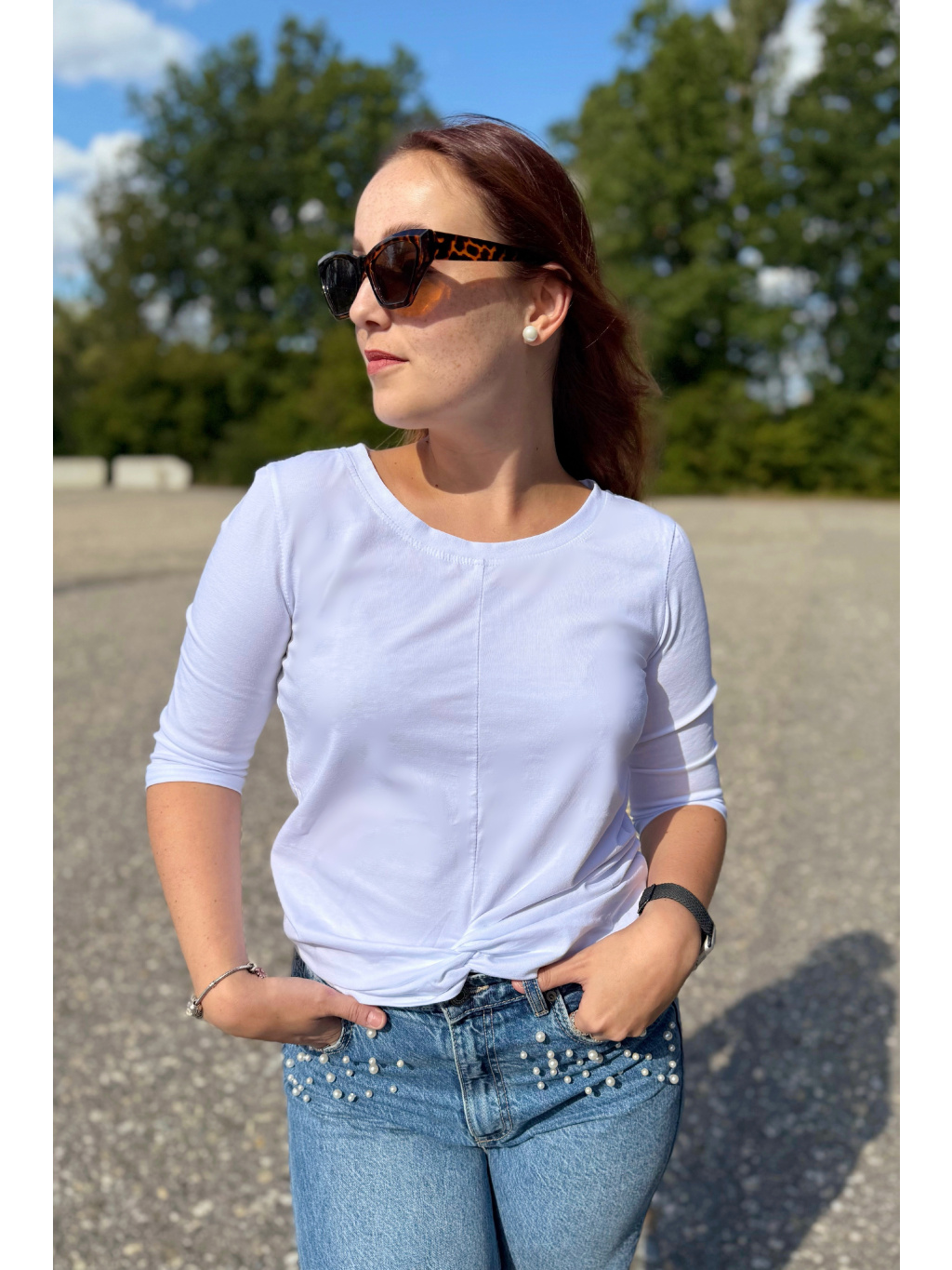 Jednoduchý a přesto jedinečný kousek, to je tričko s proplétáním. V naší nabídce tato trika najdete s krátkým, tříčtvrtečním i dlouhým rukávem. Skvěle se hodí k sukním i kalhotům do pasu. U pupíku, kde je propletení, je střih kratší, po stranách a vzadu je delší. Šijeme je z velmi příjemné biobavlny s certifikací GOTS.