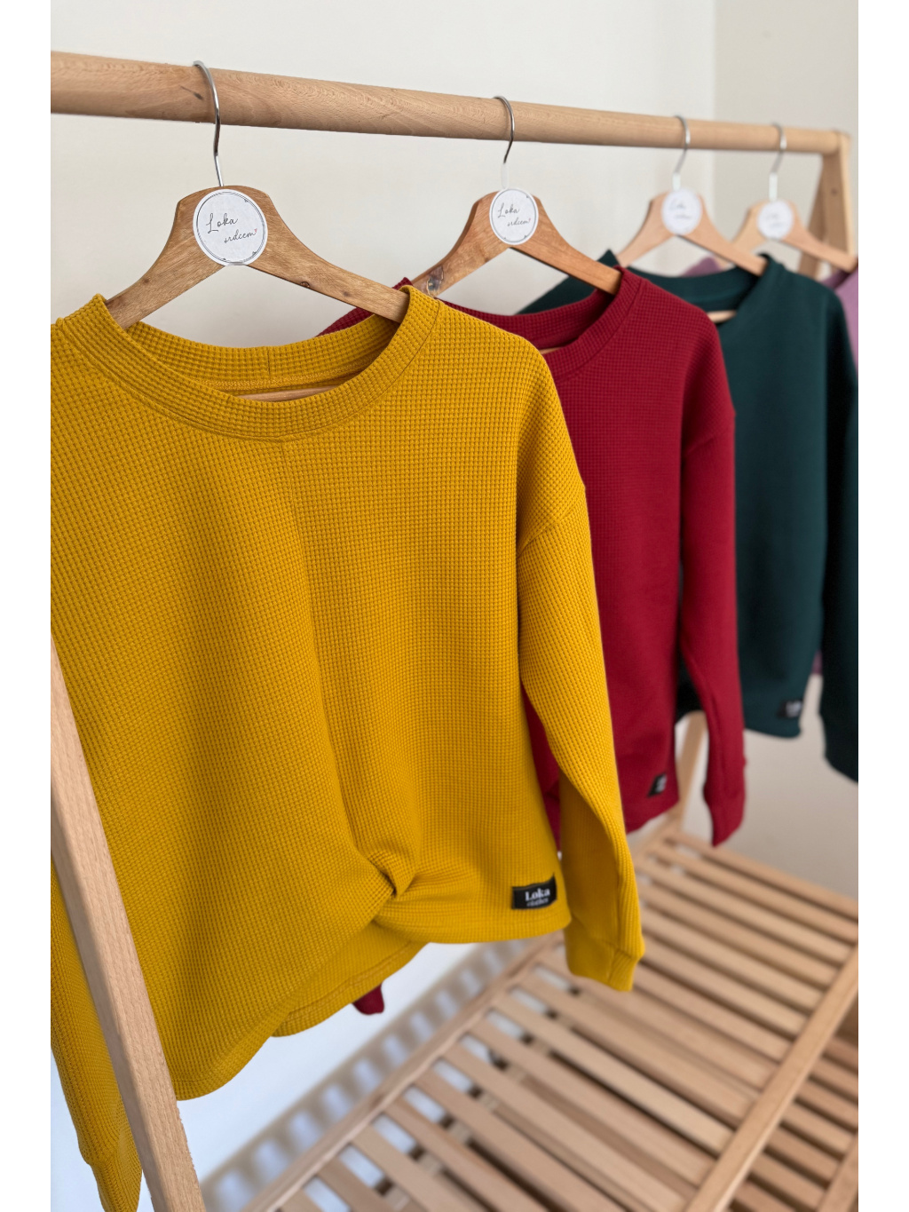 Mikiny šijeme ve 2 variantách - se "spadnutými rukávy" nebo klasickými - ty máme vyfoceny u khaki barvy. Pokud si přejete variantu bez "spadnutých rukávů", napište nám to do poznámky k objednávce.