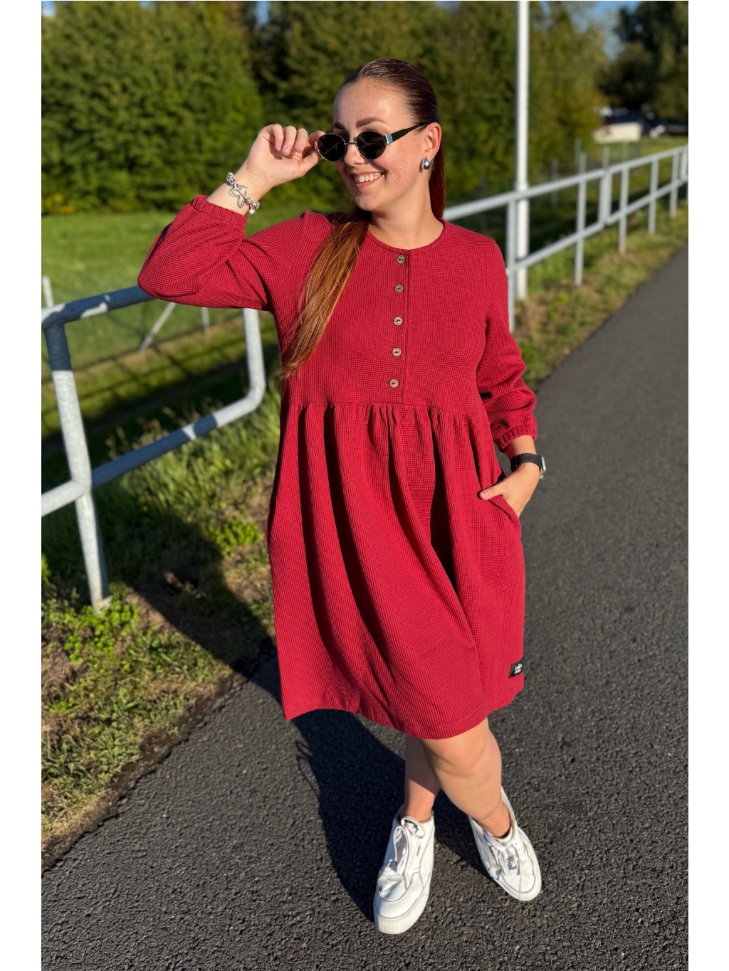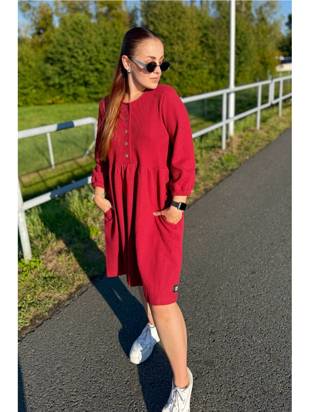 Šaty Anne jsou synonymem každodenního pohodlí. Měkký vaflový úplet s jemnou strukturou se krásně přizpůsobí postavě i pohybu. Rukávy jsou 3/4 s volnou gumičkou, praktické kapsy přinášejí pocit svobody a funkčnost v jednom. Rády Vám je ušijeme také s dlouhým rukávem, stačí nám požadavek připsat do poznámky k objednávce.