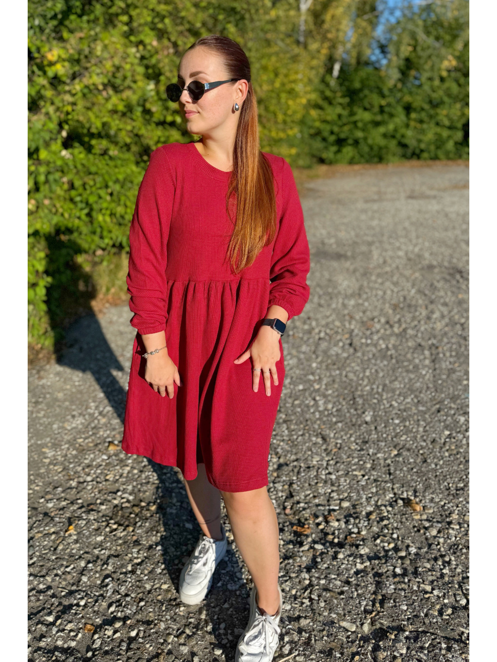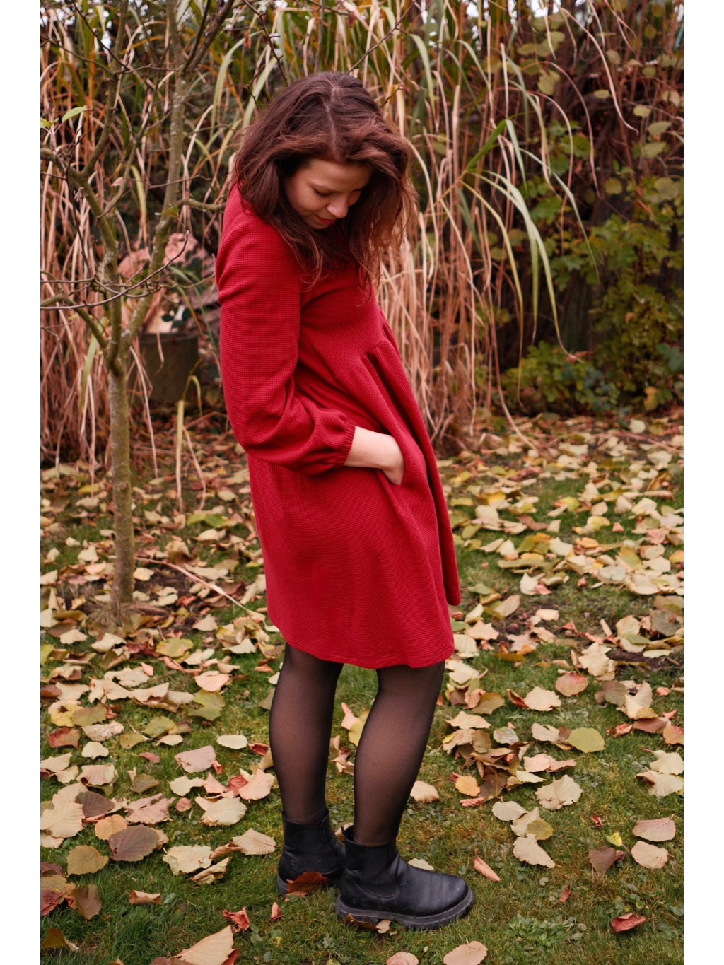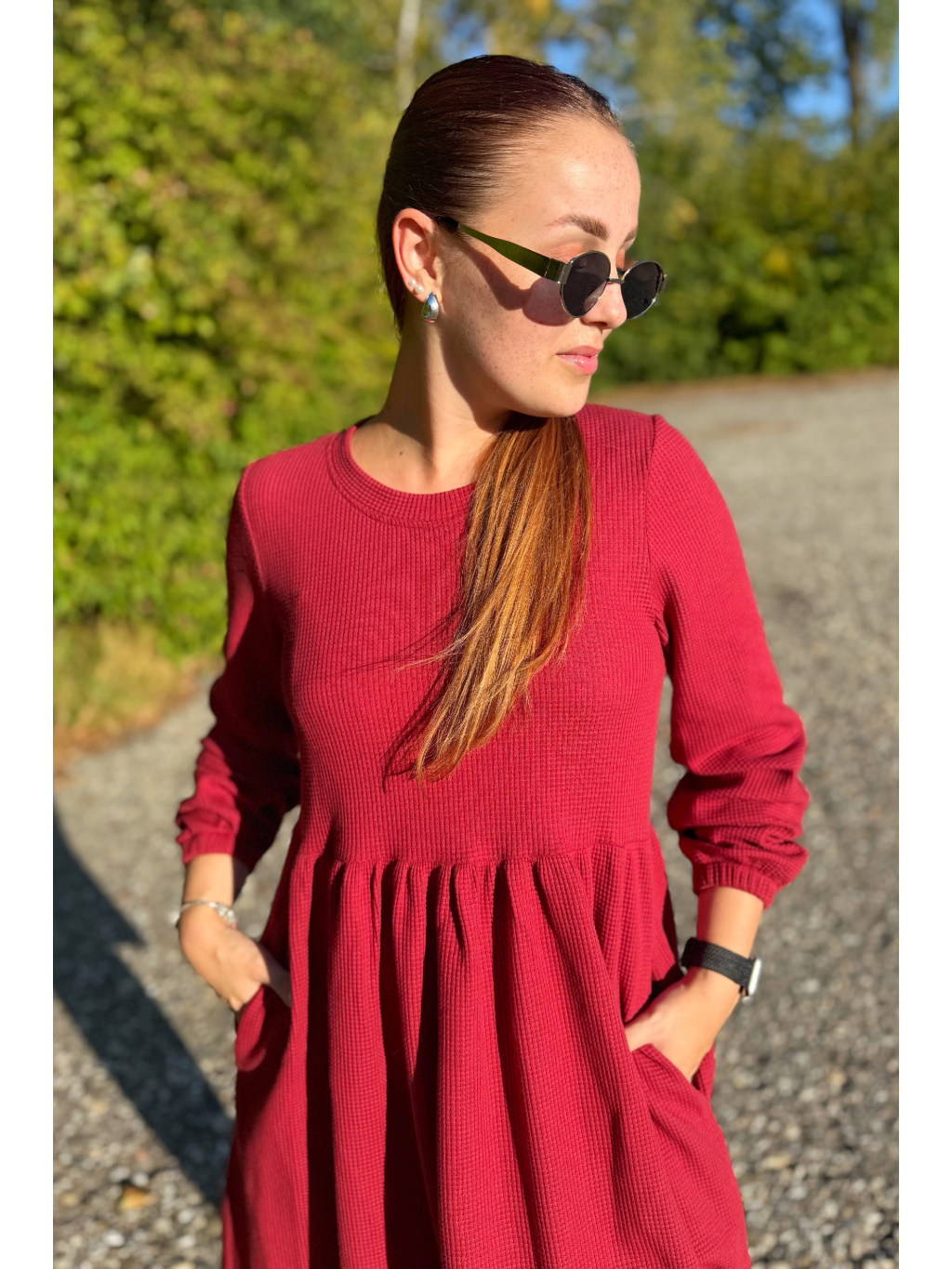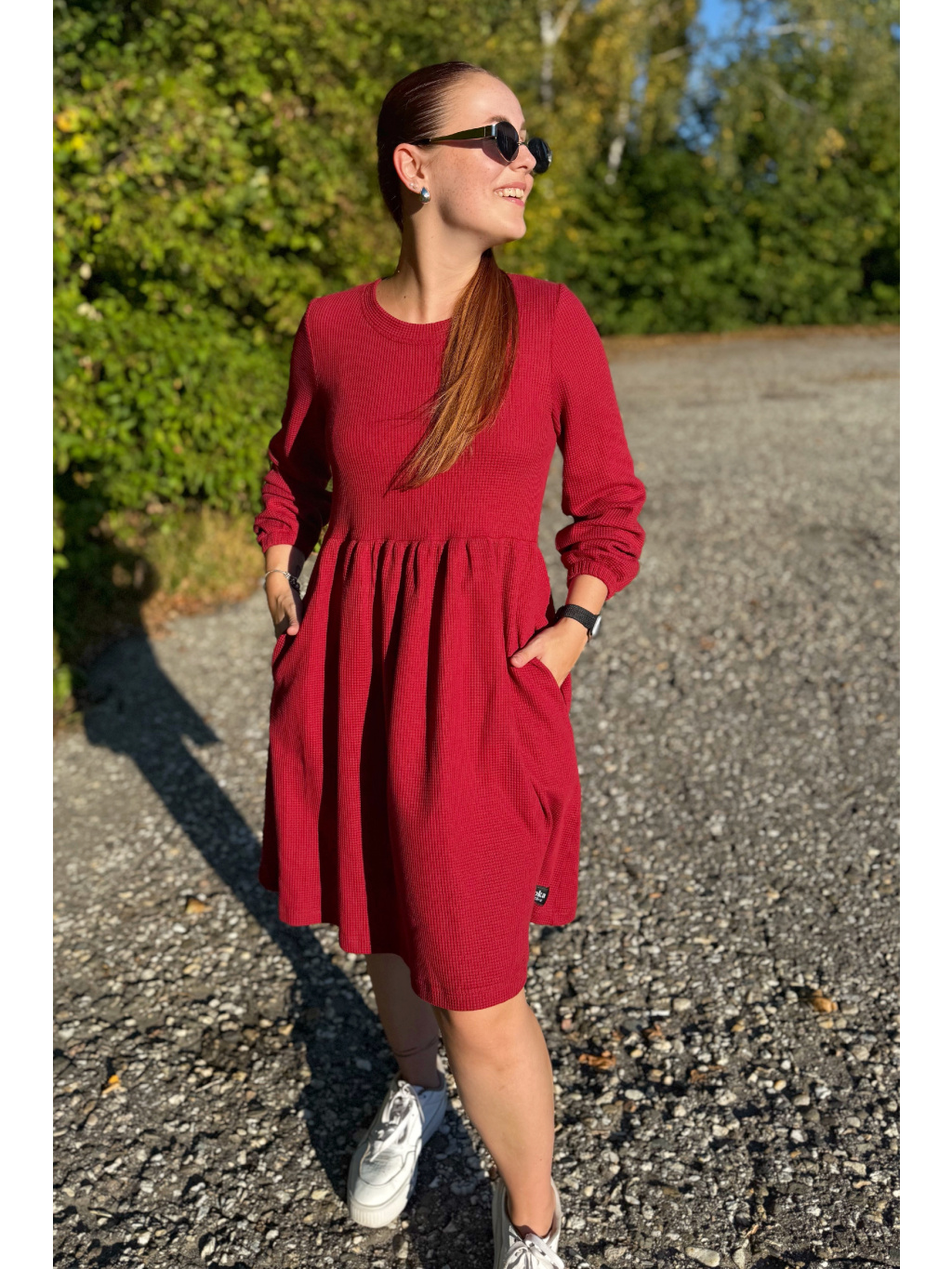 Šaty Anne jsou synonymem každodenního pohodlí. Měkký vaflový úplet s jemnou strukturou se krásně přizpůsobí postavě i pohybu. Rukávy jsou 3/4 s volnou gumičkou, praktické kapsy přinášejí pocit svobody a funkčnost v jednom. Rády Vám je ušijeme také s dlouhým rukávem, stačí nám požadavek připsat do poznámky k objednávce.