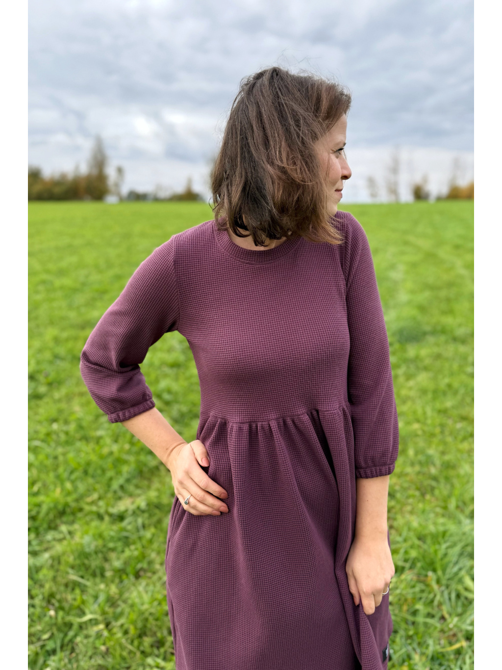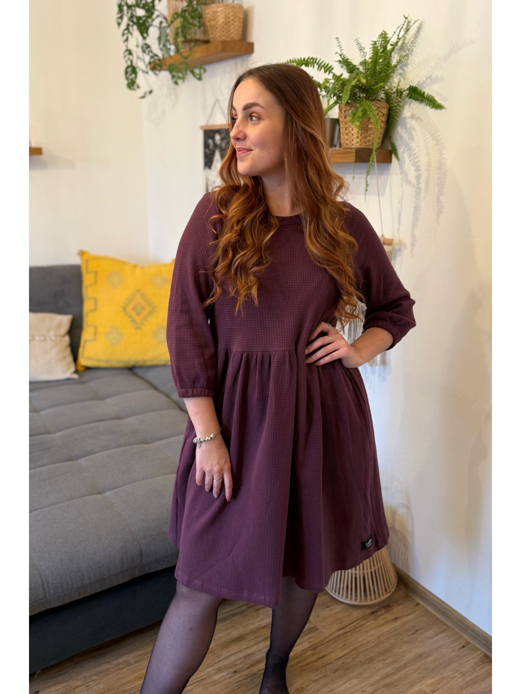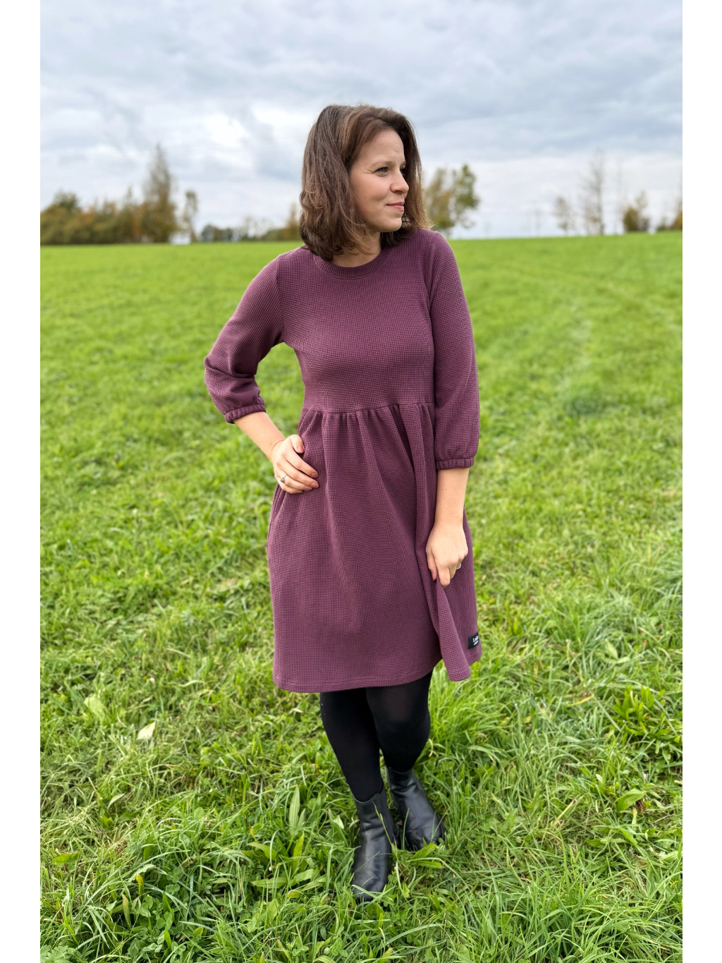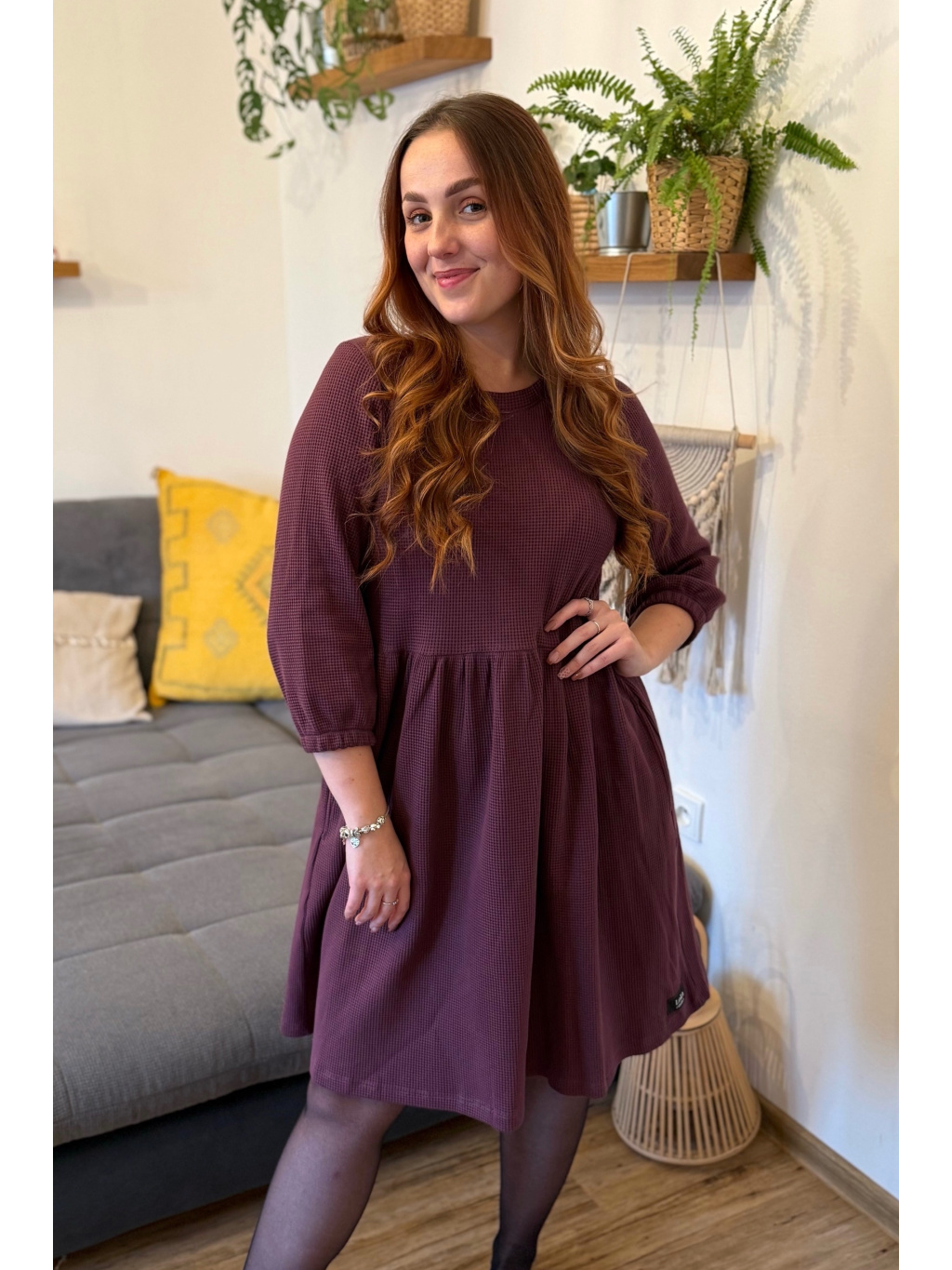Šaty Anne jsou synonymem každodenního pohodlí. Měkký vaflový úplet s jemnou strukturou se krásně přizpůsobí postavě i pohybu. Rukávy jsou 3/4 s volnou gumičkou, praktické kapsy přinášejí pocit svobody a funkčnost v jednom. Rády Vám je ušijeme také s dlouhým rukávem, stačí nám požadavek připsat do poznámky k objednávce.