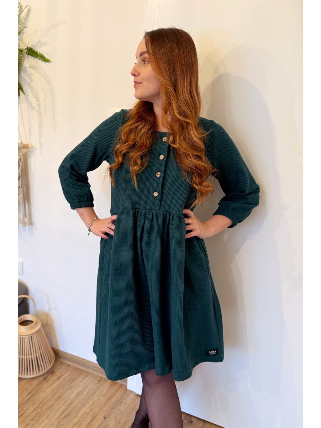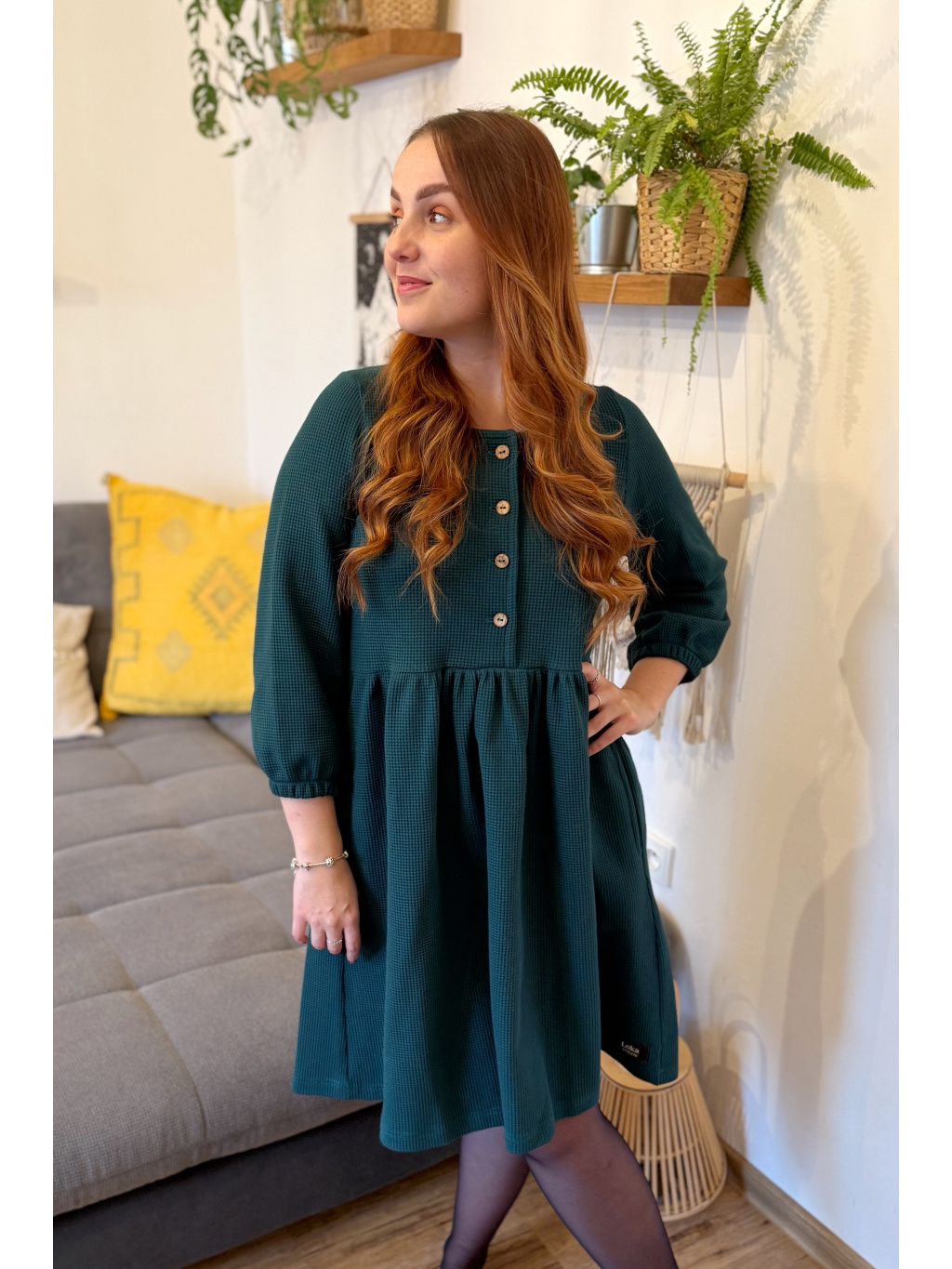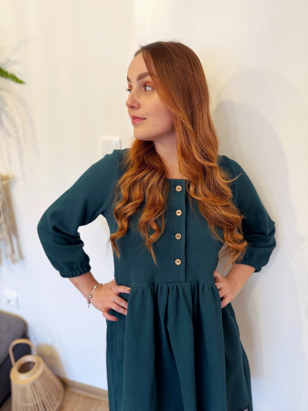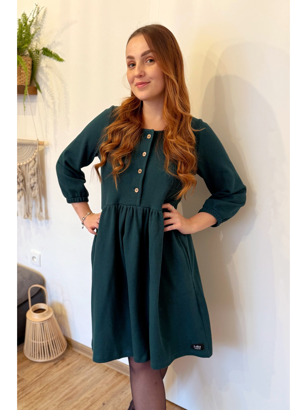Šaty Anne jsou synonymem každodenního pohodlí. Měkký vaflový úplet s jemnou strukturou se krásně přizpůsobí postavě i pohybu. Rukávy jsou 3/4 s volnou gumičkou, praktické kapsy přinášejí pocit svobody a funkčnost v jednom. Rády Vám je ušijeme také s dlouhým rukávem, stačí nám požadavek připsat do poznámky k objednávce.
