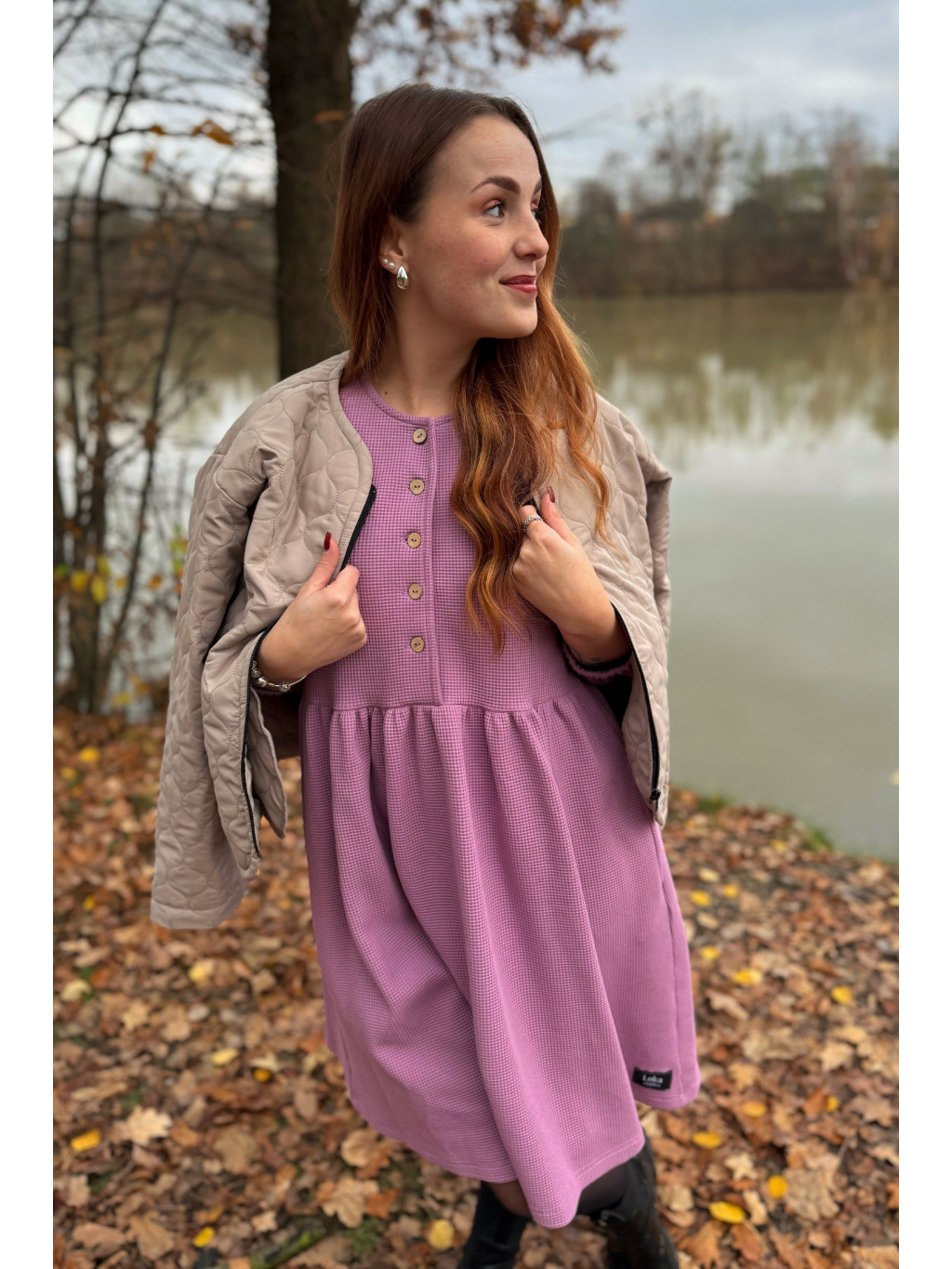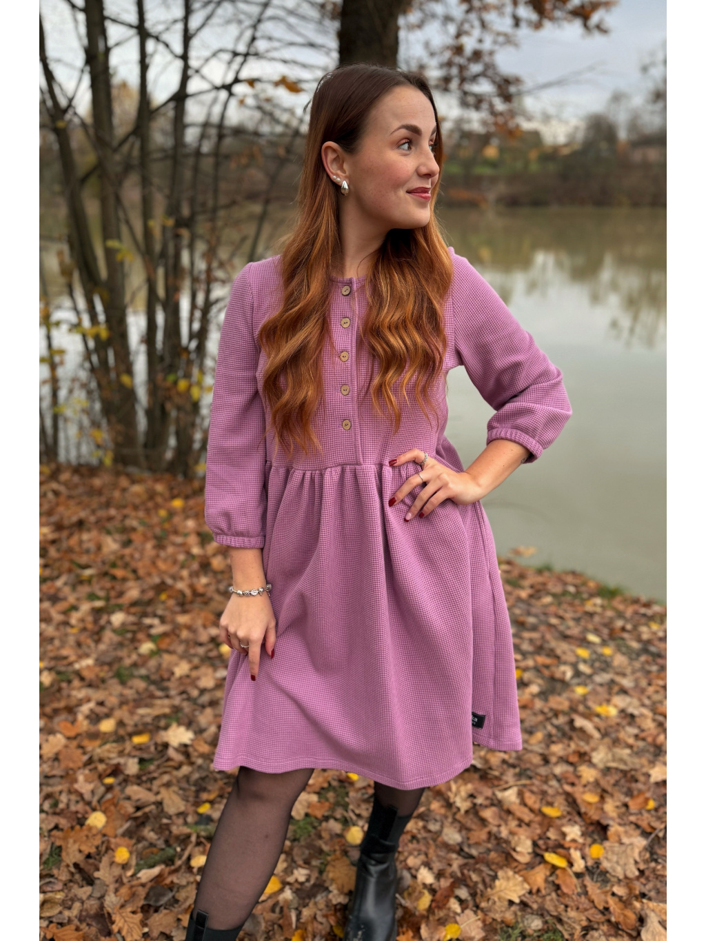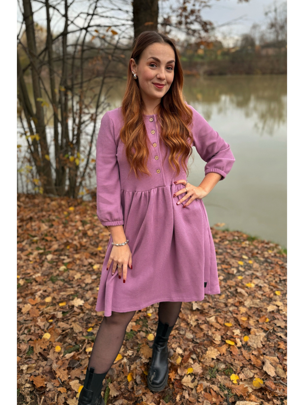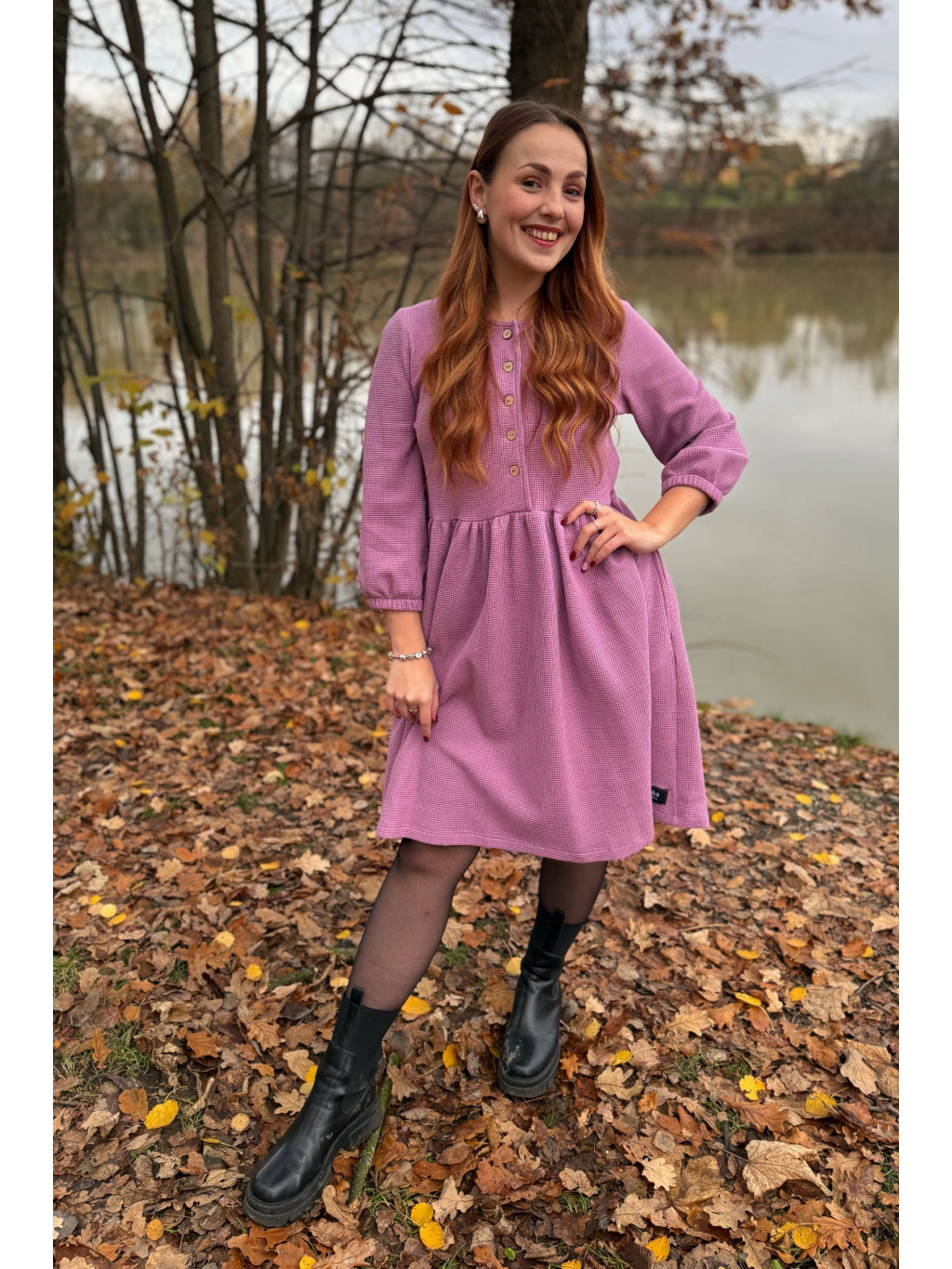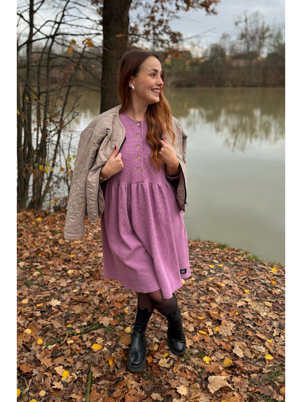 Šaty Anne jsou synonymem každodenního pohodlí. Měkký vaflový úplet s jemnou strukturou se krásně přizpůsobí postavě i pohybu. Rukávy jsou 3/4 s volnou gumičkou, praktické kapsy přinášejí pocit svobody a funkčnost v jednom. Rády Vám je ušijeme také s dlouhým rukávem, stačí nám požadavek připsat do poznámky k objednávce.
