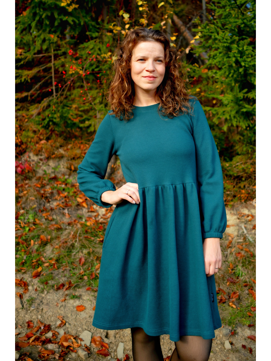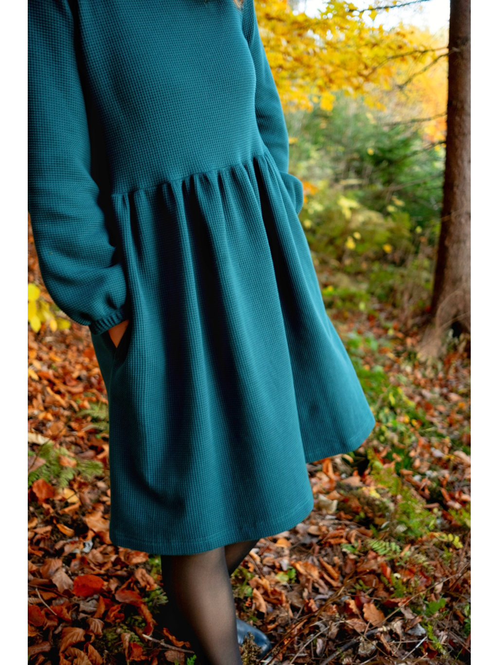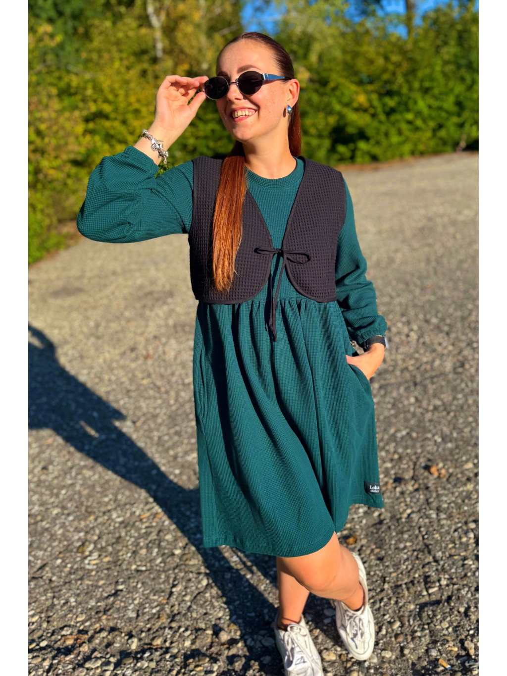 Šaty Anne jsou synonymem každodenního pohodlí. Měkký vaflový úplet s jemnou strukturou se krásně přizpůsobí postavě i pohybu. Rukávy jsou 3/4 s volnou gumičkou, praktické kapsy přinášejí pocit svobody a funkčnost v jednom. Rády Vám je ušijeme také s dlouhým rukávem, stačí nám požadavek připsat do poznámky k objednávce.