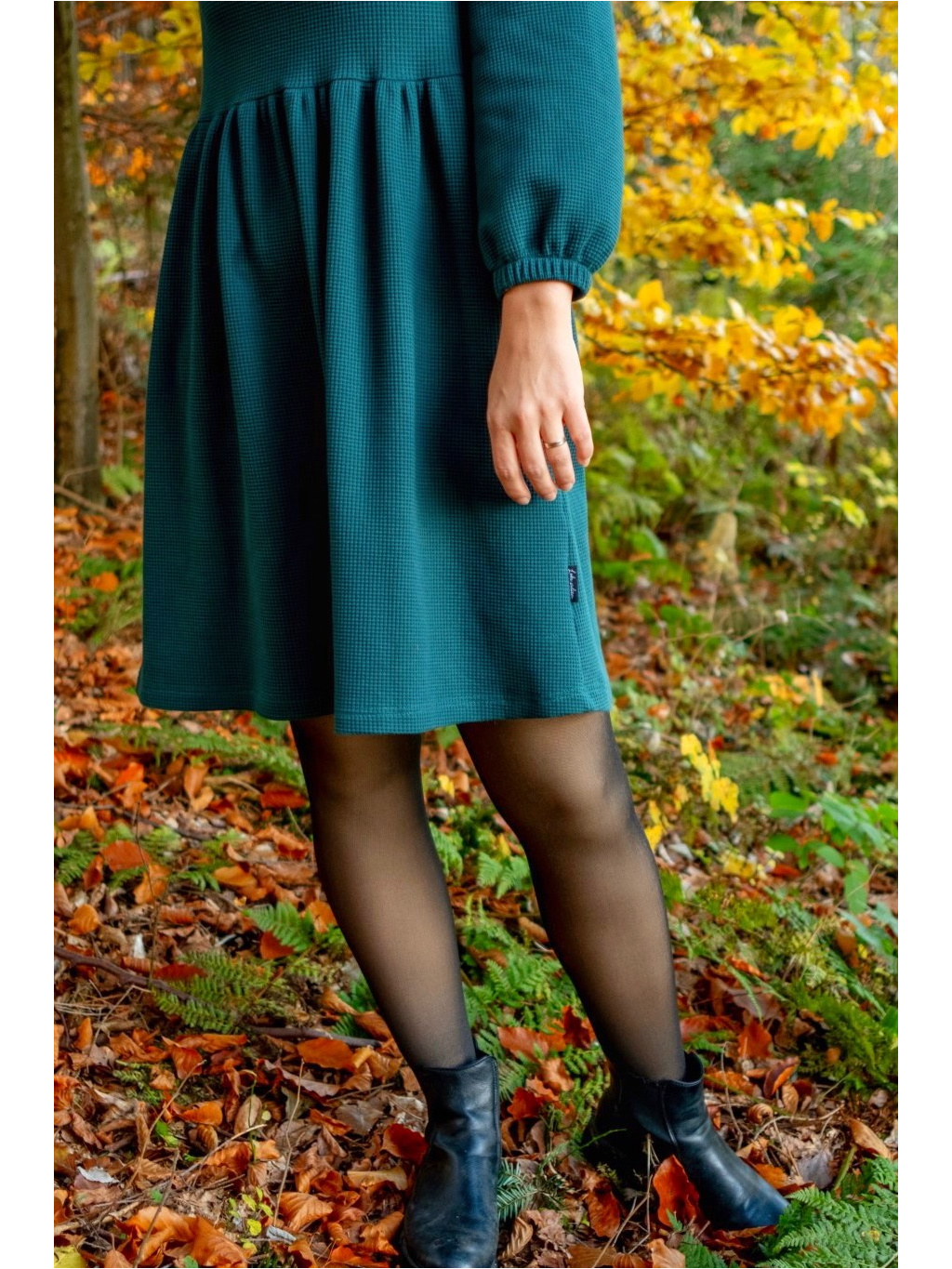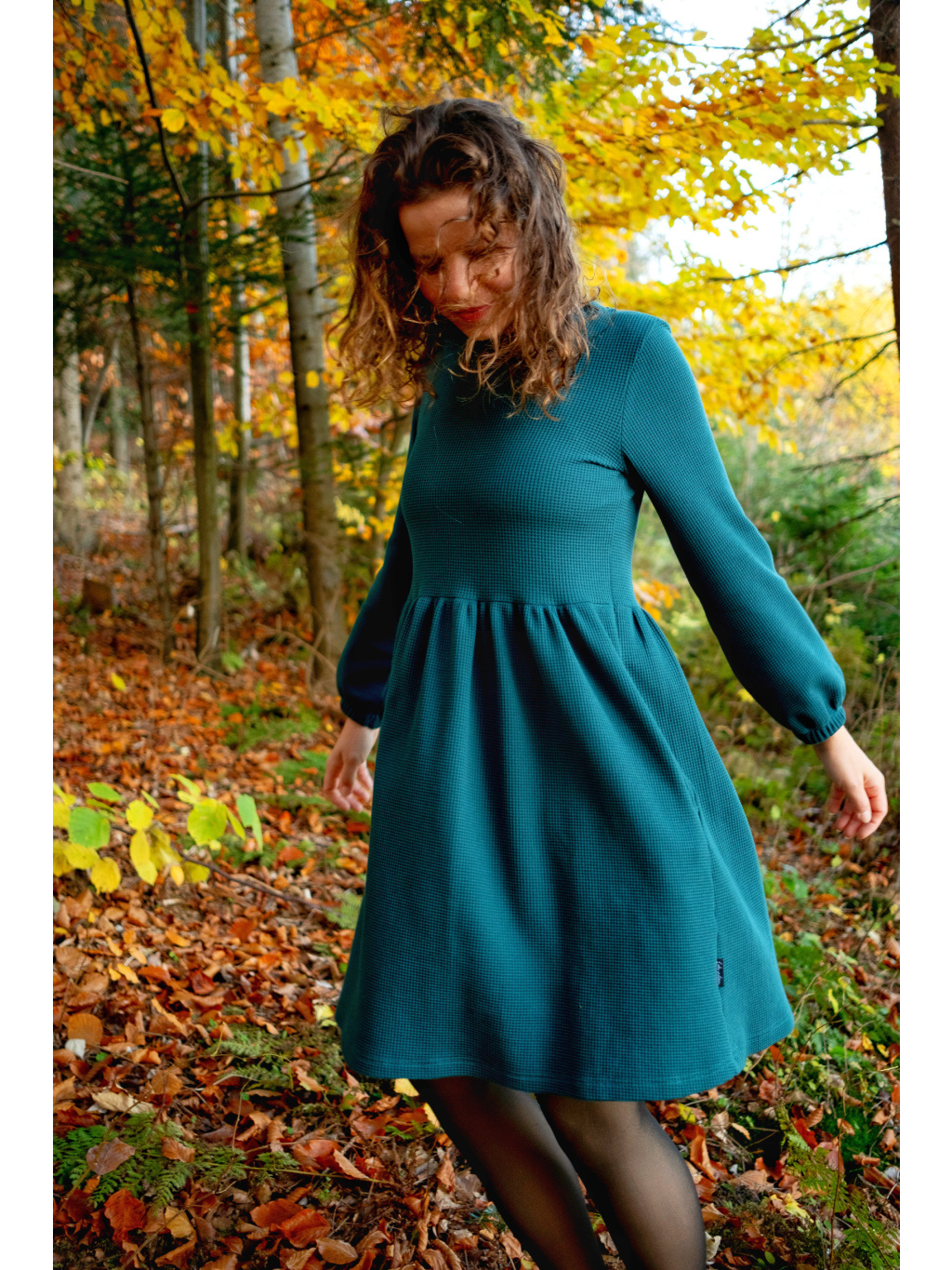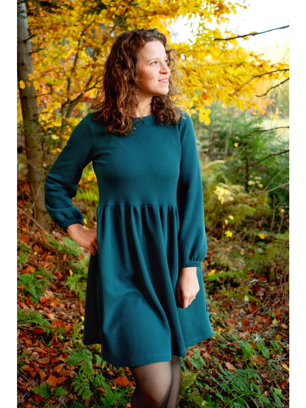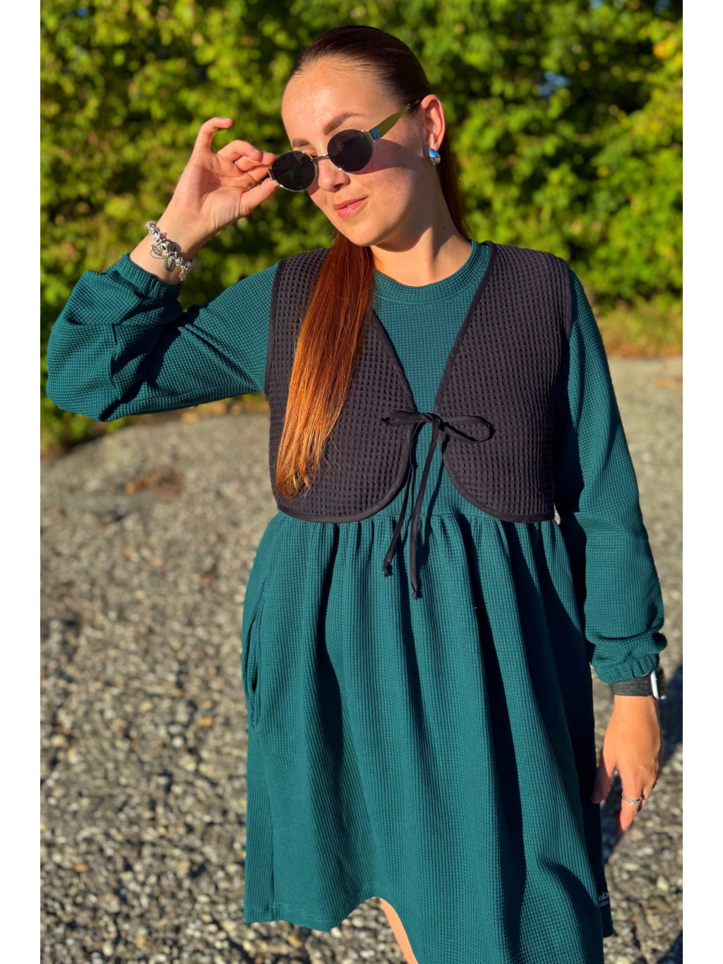 Šaty Anne jsou synonymem každodenního pohodlí. Měkký vaflový úplet s jemnou strukturou se krásně přizpůsobí postavě i pohybu. Rukávy jsou 3/4 s volnou gumičkou, praktické kapsy přinášejí pocit svobody a funkčnost v jednom. Rády Vám je ušijeme také s dlouhým rukávem, stačí nám požadavek připsat do poznámky k objednávce.