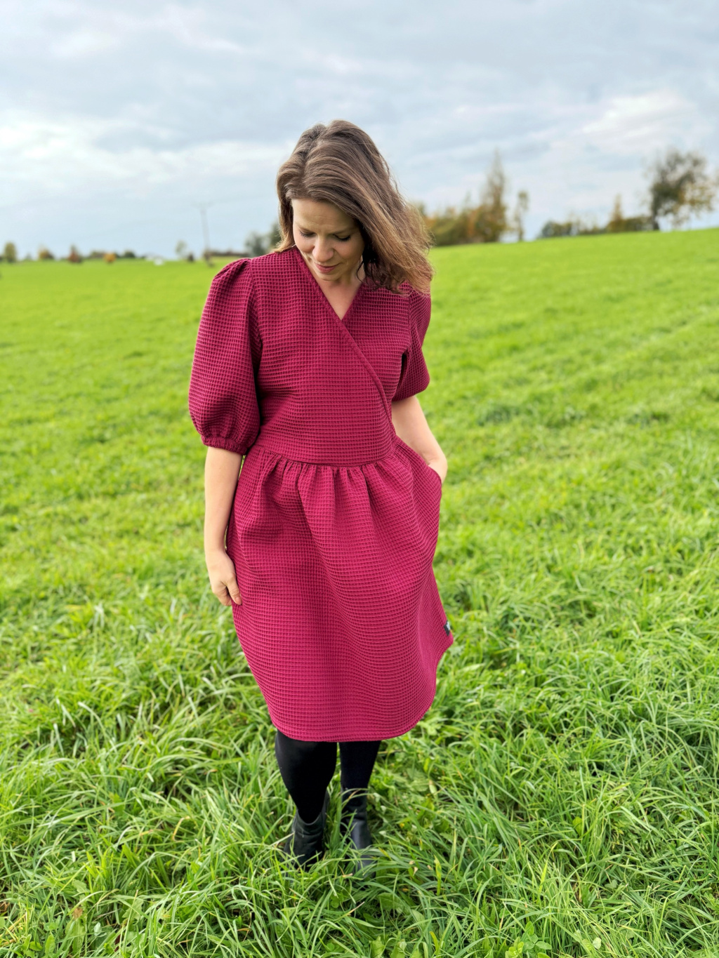 Nové vaflové šaty zaujmou na první pohled svým krásným, výraznějším vzorem vafloviny a pevnějším bavlněným materiálem, který drží tvar, ale zůstává příjemný na těle.