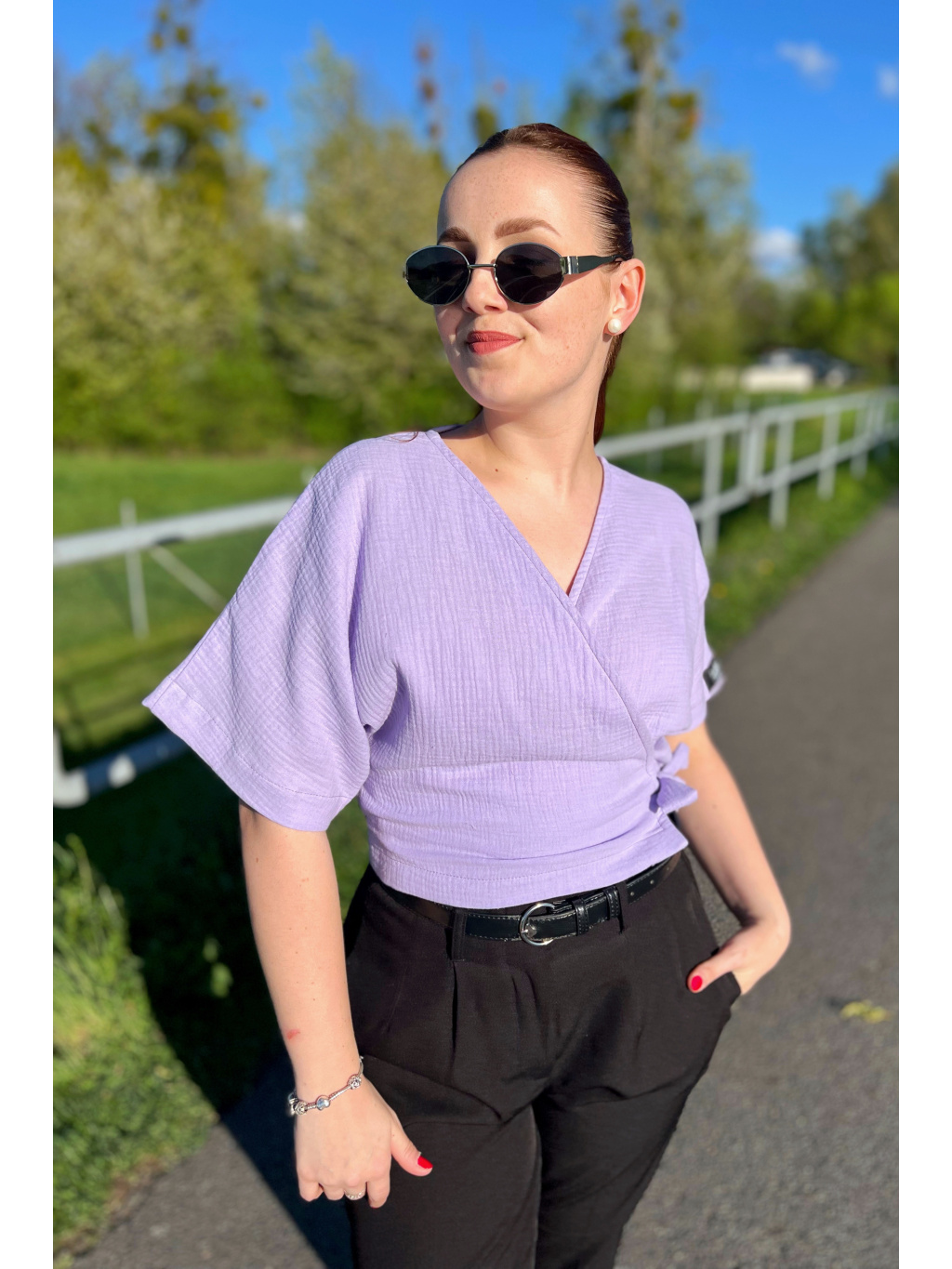 Zavinovací top z jemného mušelínu Enny je lehký jako pírko, vzdušný a naprosto ideální na teplé jarní a letní dny. Mušelín je úžasně příjemný na těle, rychle schne a krásně dýchá – zkrátka must-have pro letní šatník!