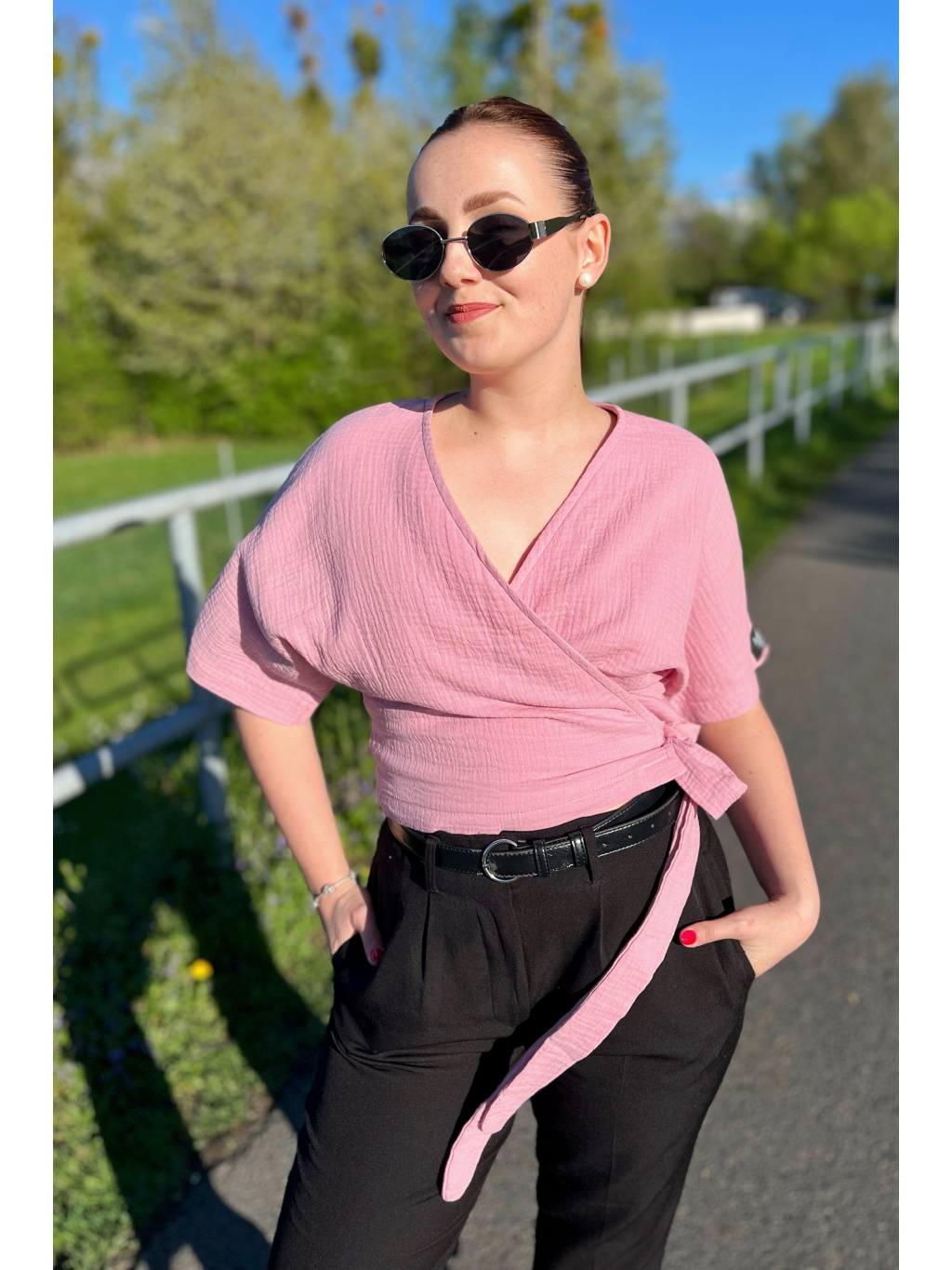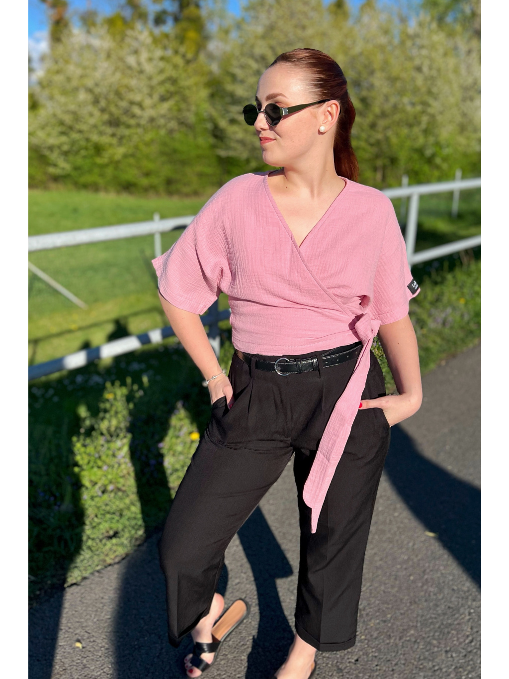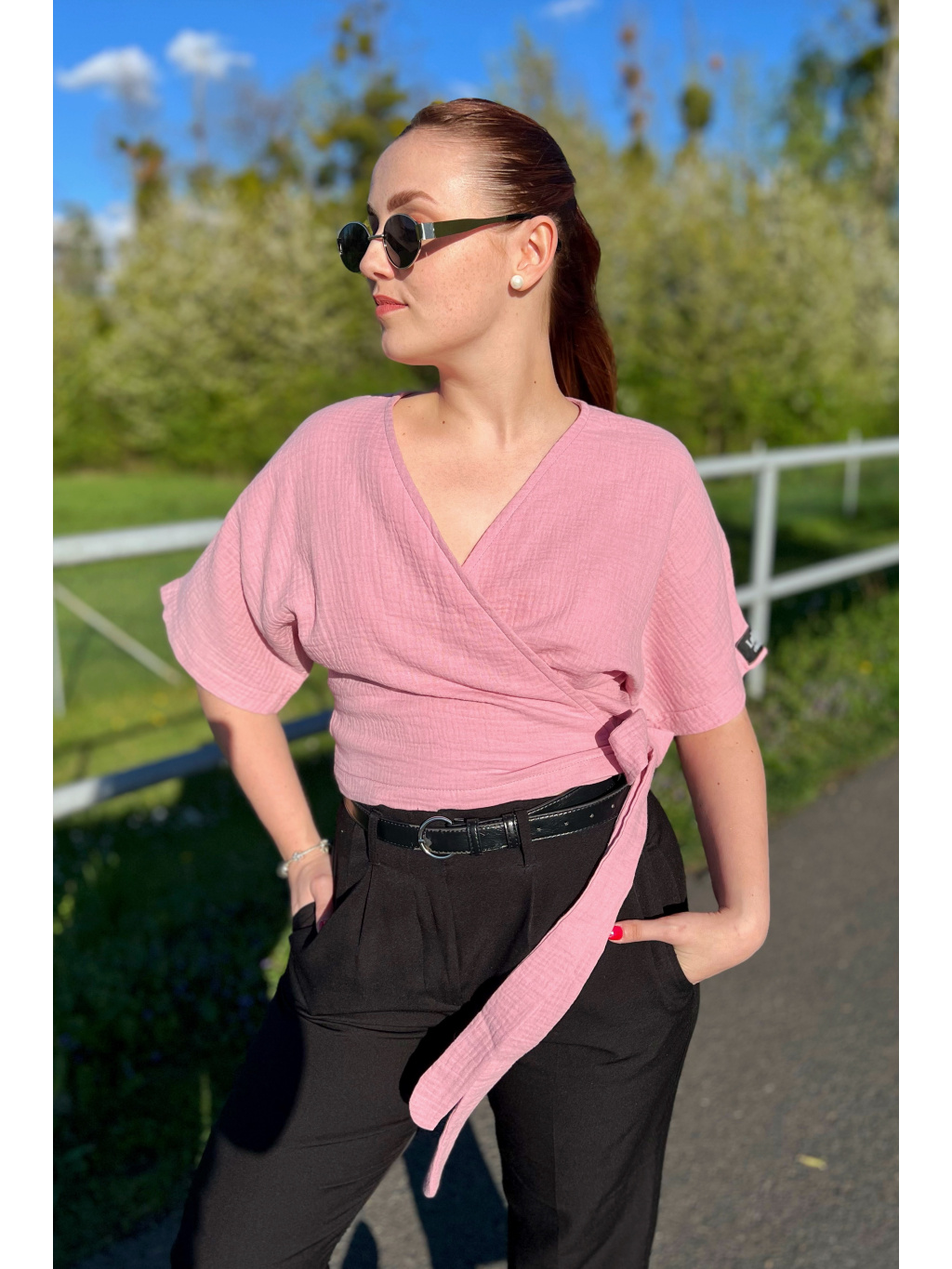 Zavinovací top z jemného mušelínu Enny je lehký jako pírko, vzdušný a naprosto ideální na teplé jarní a letní dny. Mušelín je úžasně příjemný na těle, rychle schne a krásně dýchá – zkrátka must-have pro letní šatník!